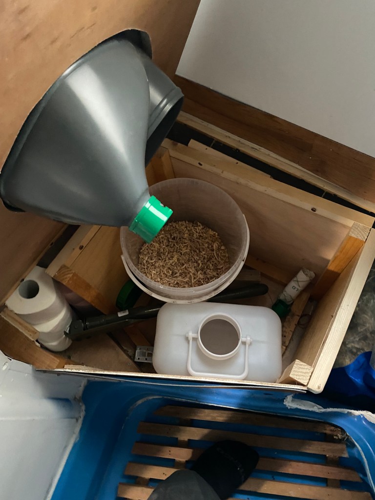 On a même pris le temps de pauffiner nos toilettes seches avec un séparateur d’urine chers lecteurs. ça, c’est la méga classe !!!!