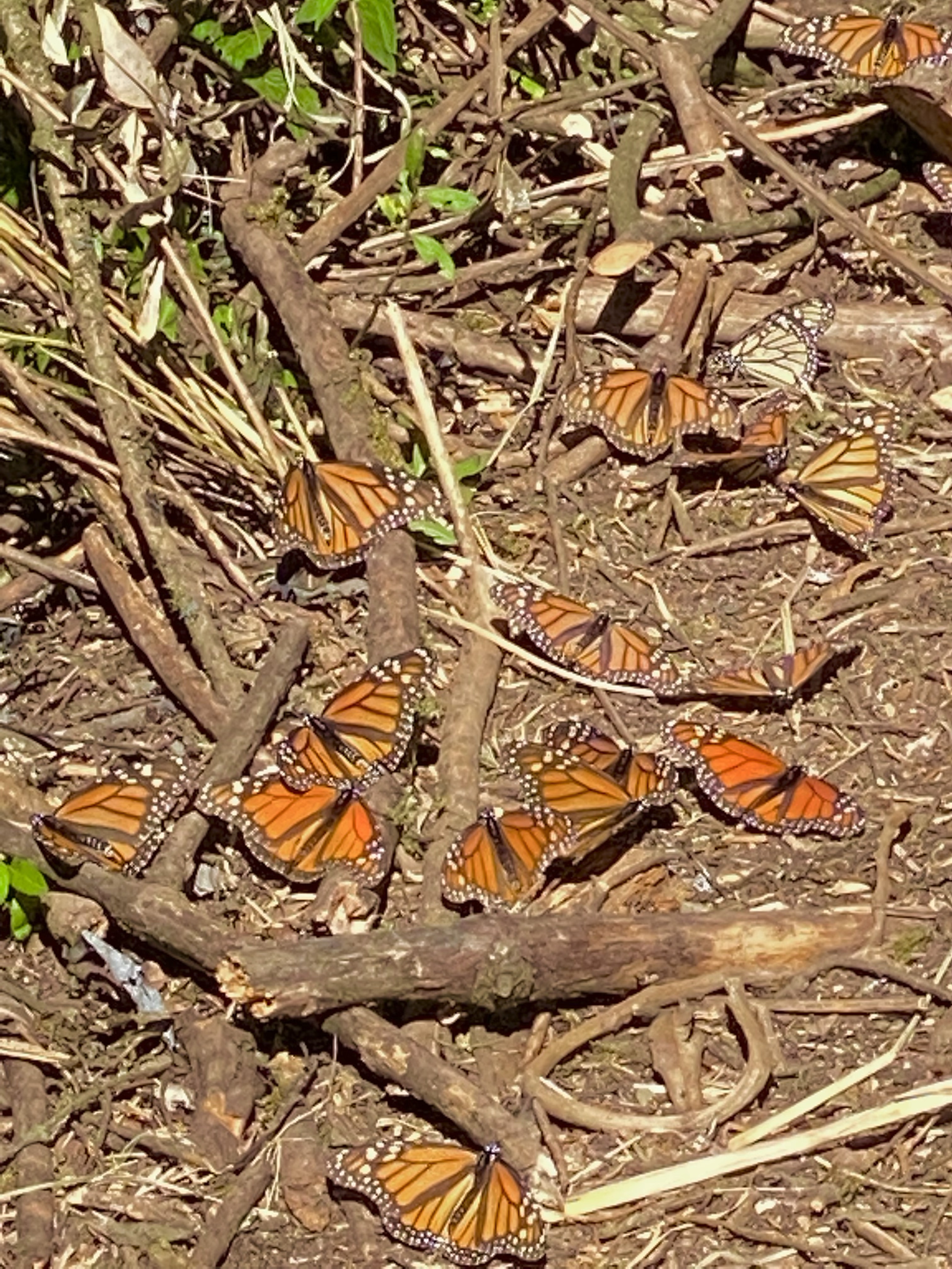 On avait beaucoup entendu parler des papillons monarques. Papillons migrateurs, Ils descendent l’hiver de l’Amérique du Nord pour trouver un peu de chaleur dans les montagnes de la région de Mexico. Il faut 5 générations de papillons pour arriver à destination…