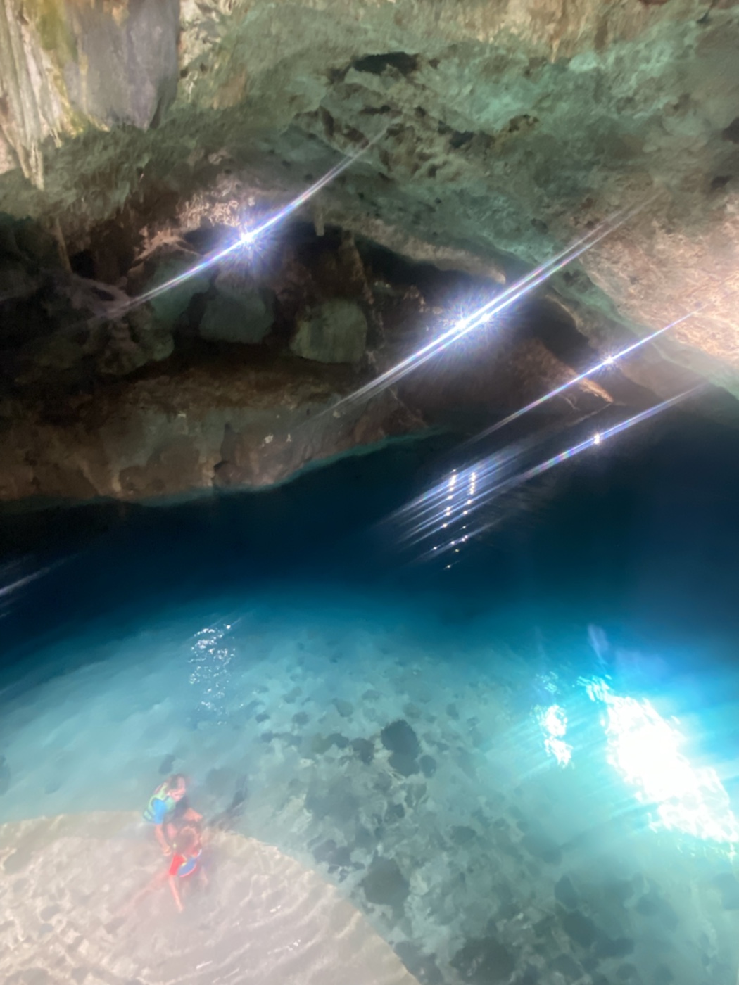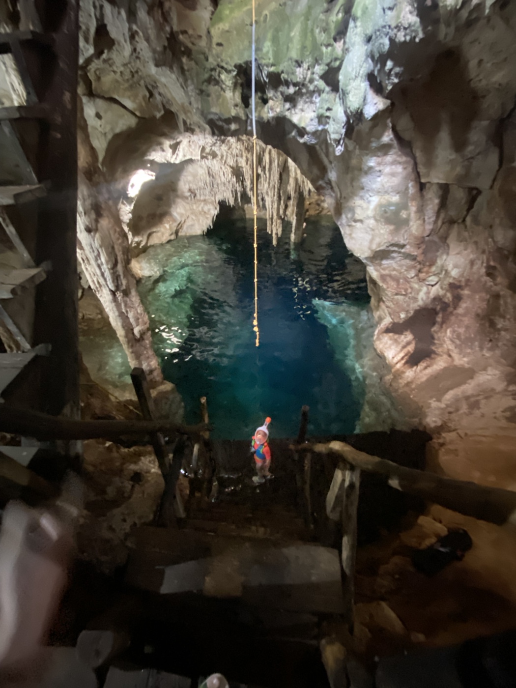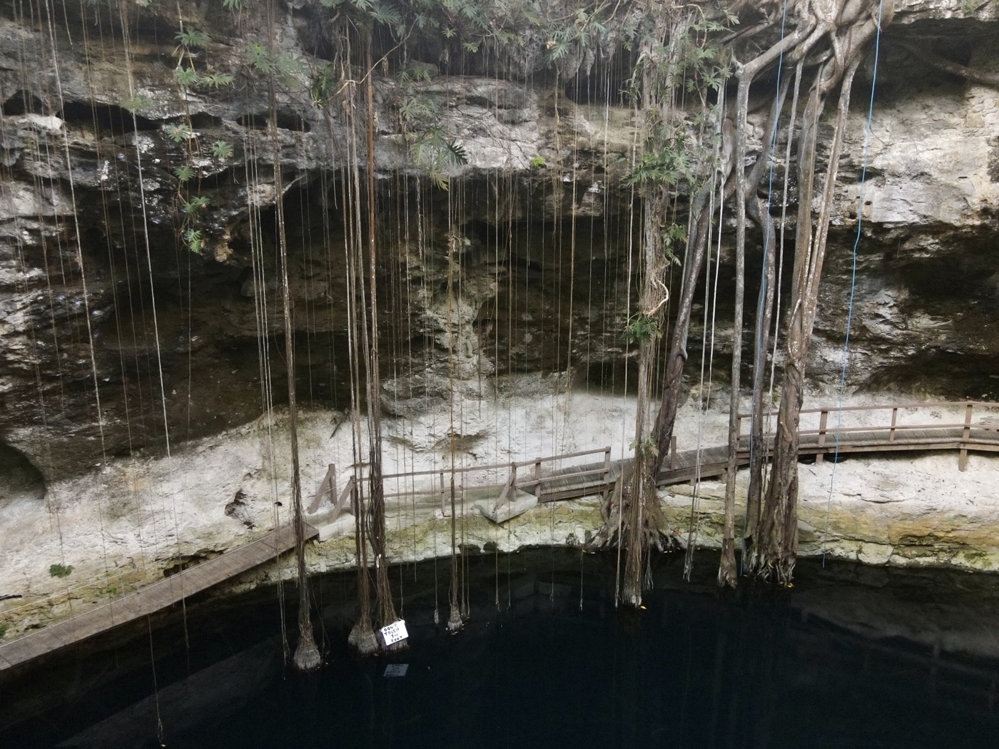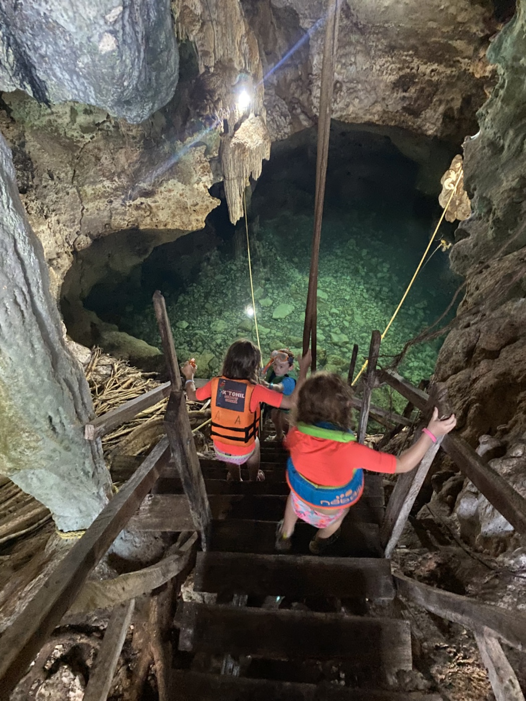 Nous avons pu découvrir ce jour là tous les types de cenotes précédemment décris. Leur point commun : la pureté de l’eau et le calme des lieux. Une eau de pur cristal pouvant laisser passer les rayons du soleil et laissant entrevoir des fonds accidentés de stalactites millénaires. Une merveille pour les yeux. Les filles ont adoré se baigner et explorer les lieux avec leurs masques de plongée.