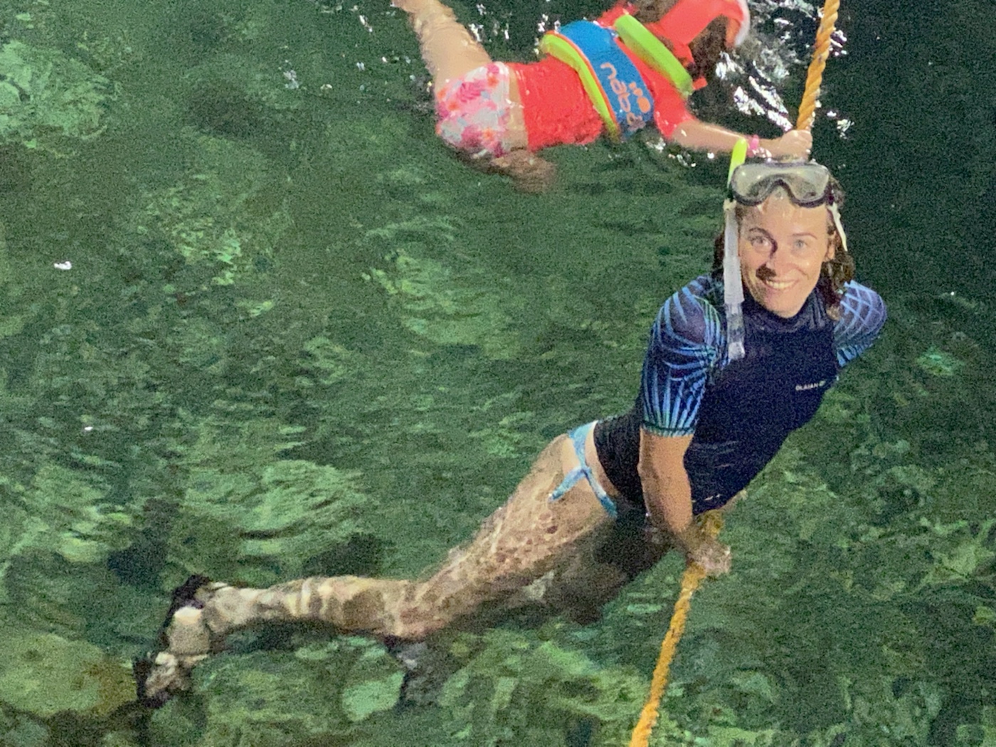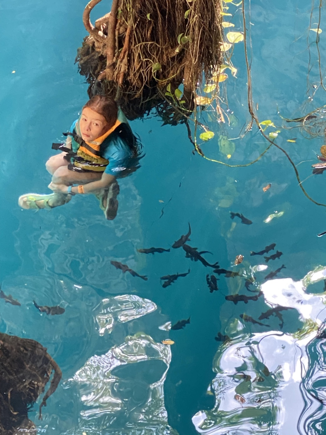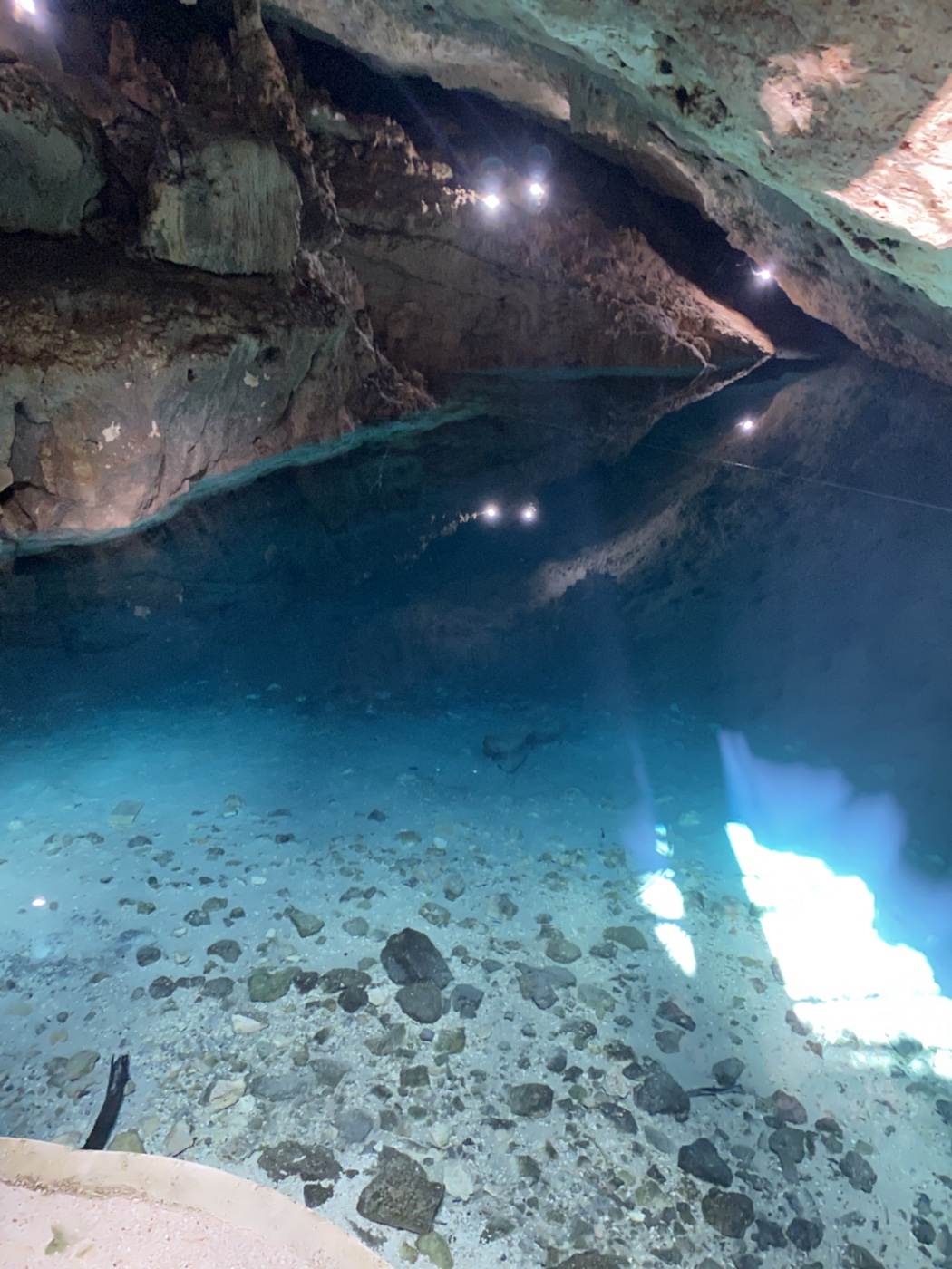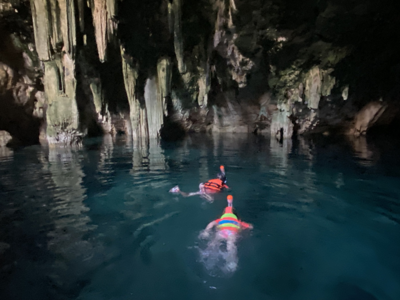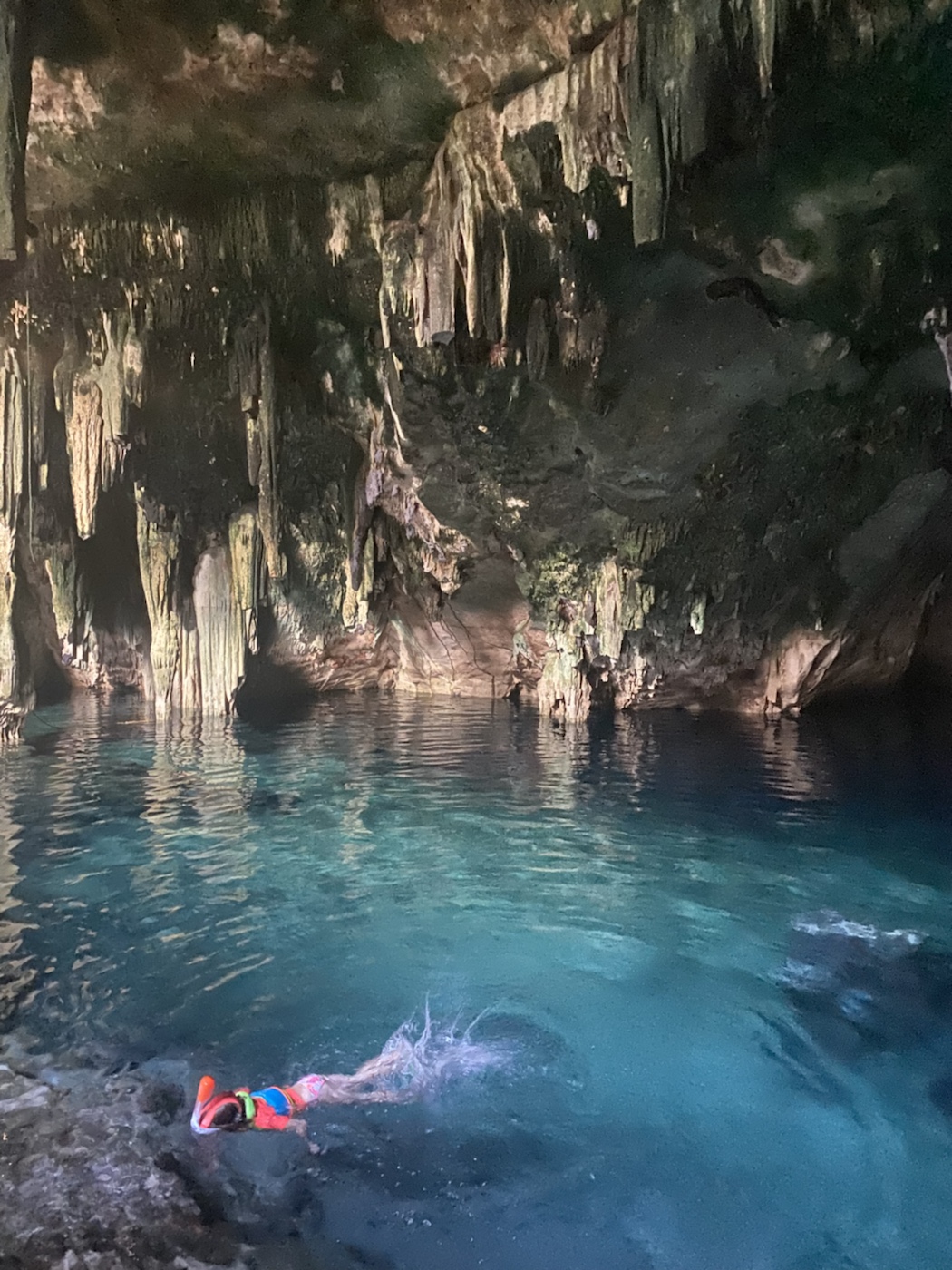 Nous avons pu découvrir ce jour là tous les types de cenotes précédemment décris. Leur point commun : la pureté de l’eau et le calme des lieux. Une eau de pur cristal pouvant laisser passer les rayons du soleil et laissant entrevoir des fonds accidentés de stalactites millénaires. Une merveille pour les yeux. Les filles ont adoré se baigner et explorer les lieux avec leurs masques de plongée.