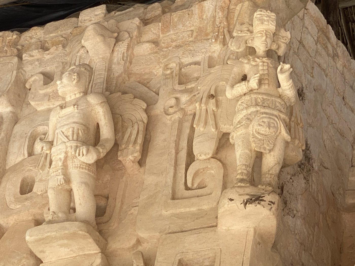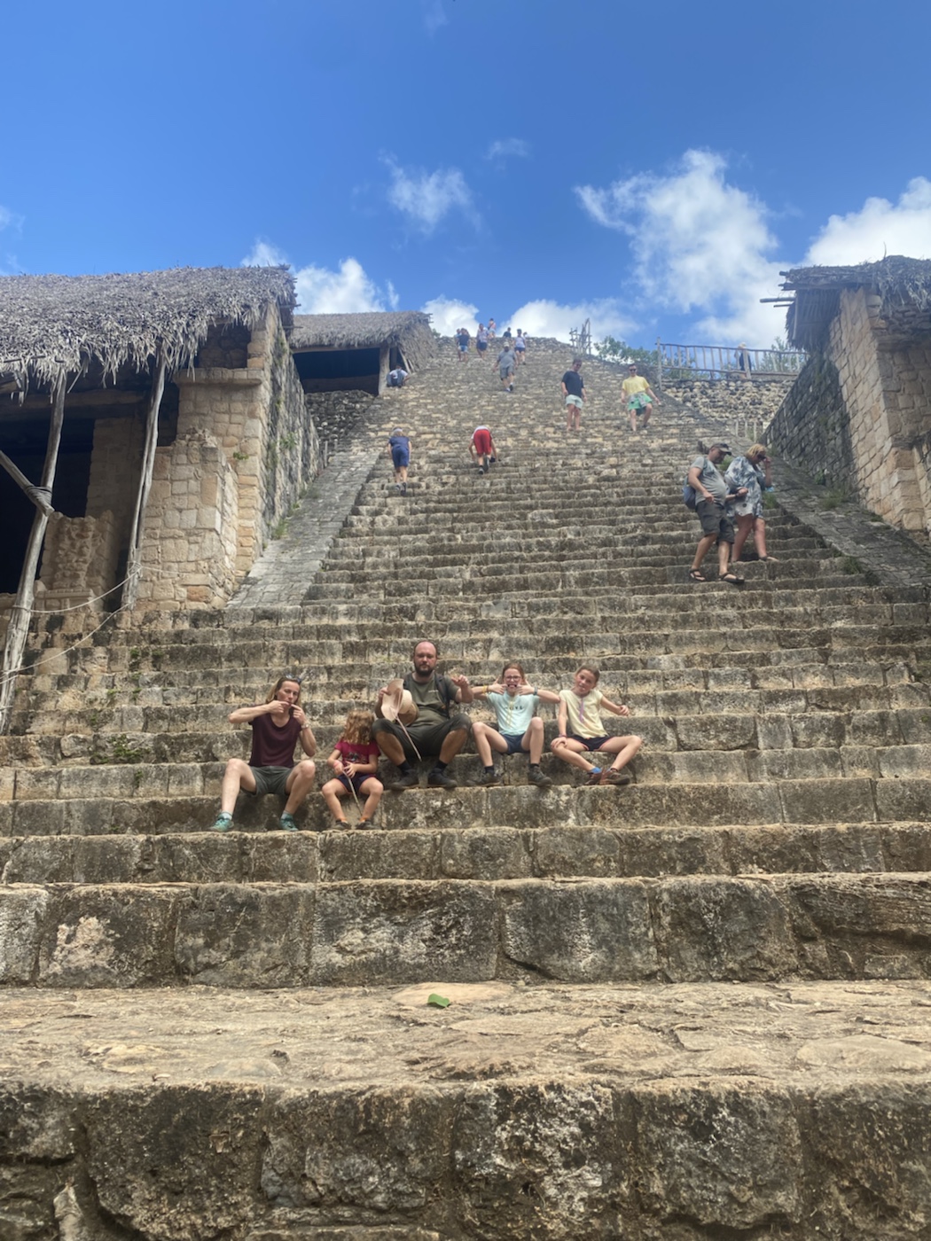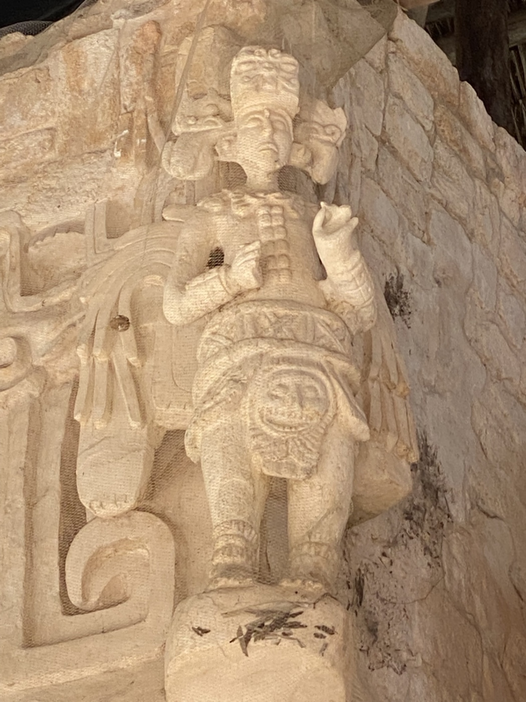 Le lendemain montée sur les pyramides et les ruines d’ek balam. Un site maya particulièrement bien conservé et où on a la chance de pouvoir encore monter : a noter les sculptures magnifiques en stuc de la bouche de jaguar, des personnages pressurés asiatiques juchés sur les balustrades et surtout de la vue magnifique sur la jungle du Yucatan.