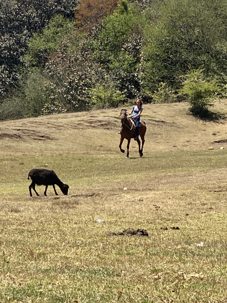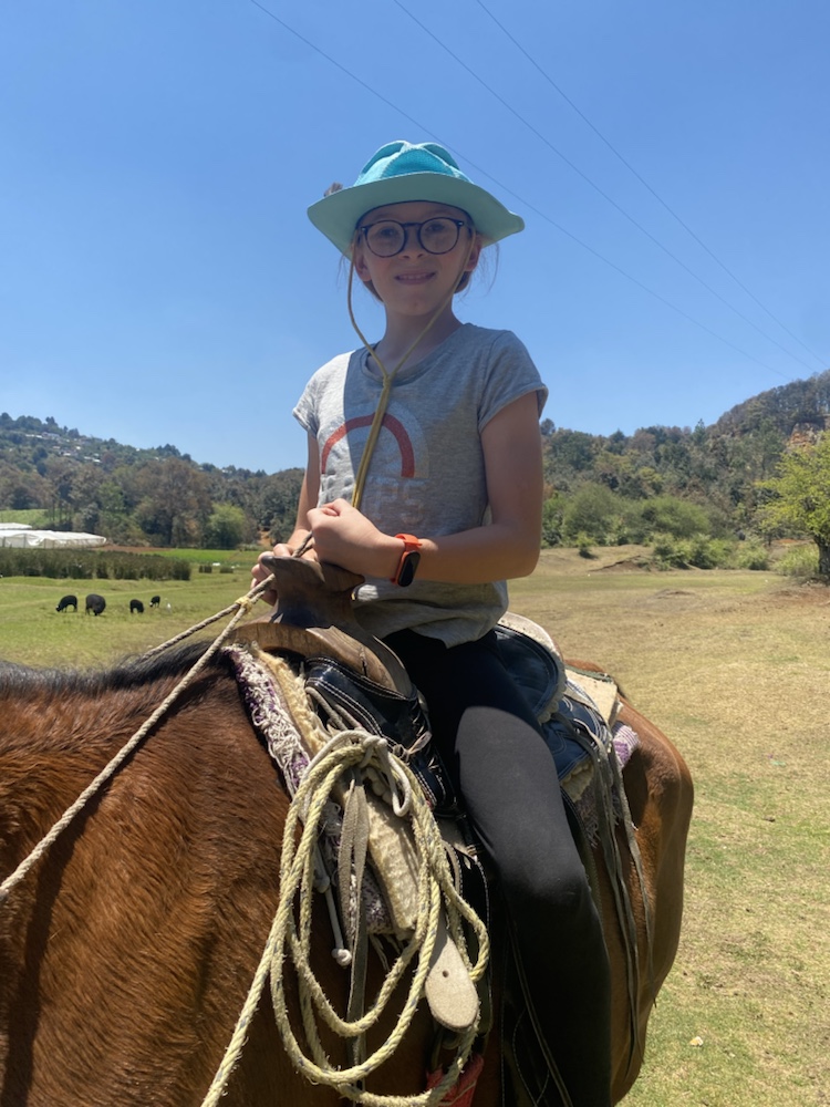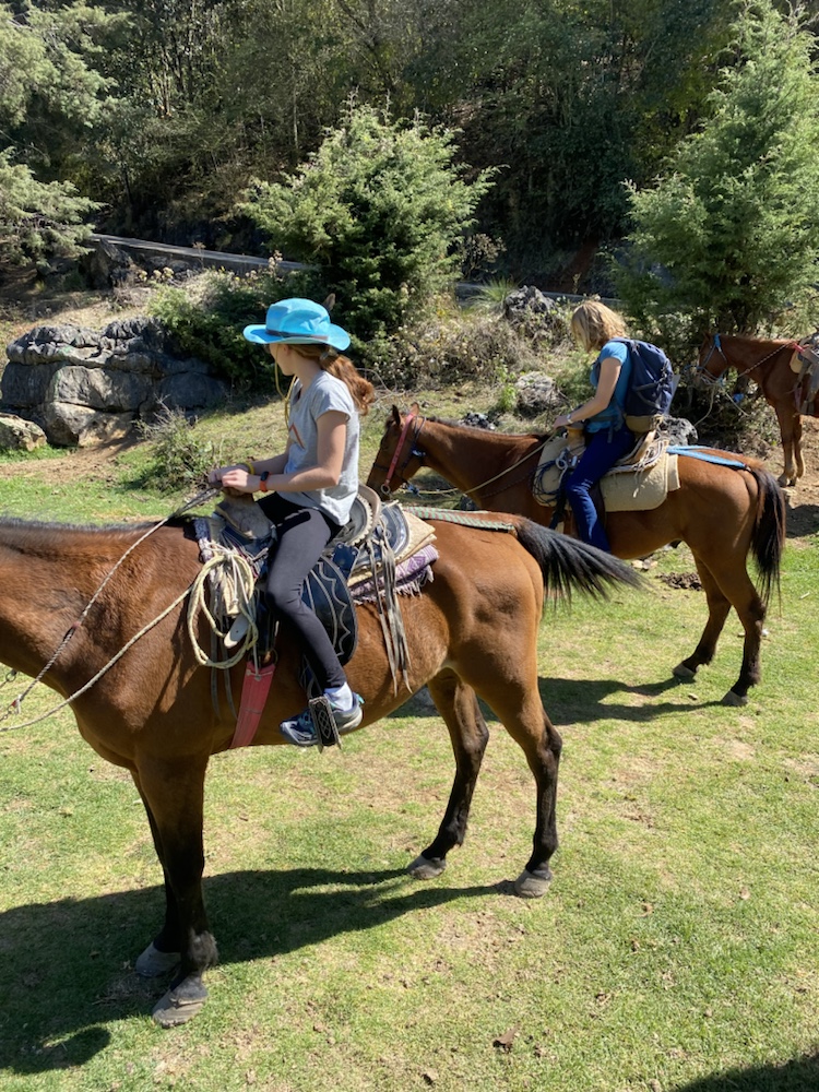Une heure et demi de balade sur des selles mexicaines en bois. Les filles s’en sont très bien tirés et Maylis a bluffé les guides en montant seule sur son destrier… (il faudra qu’on vous explique le goût pour l’escalade de certaines de nos filles pendant ce voyage…)