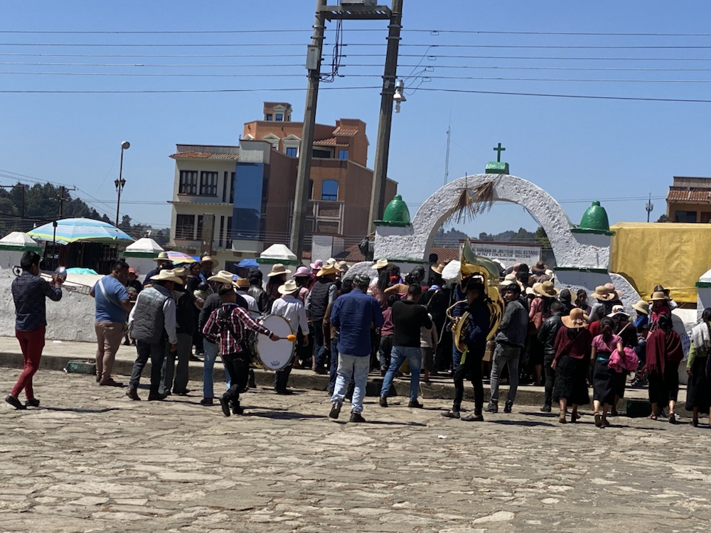 Devant elles, des familles se tiennent assises ou à genoux. Psalmodiant en langue tzotzile. Des bouteilles sont échangées. Du liquide renversé. Certains sacrifient un poulet en chantant en sourdine.