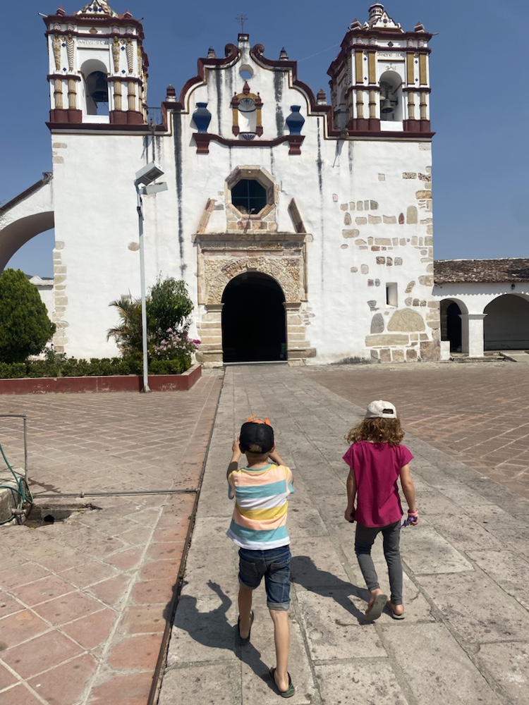 On visite le village de teotitlan, célèbre pour ses tapis. Plusieurs semaines sont nécessaires pour en faire un. C’est magnifique de voir les doigts agiles des tisseuses donner forme à l’un d’eux.
