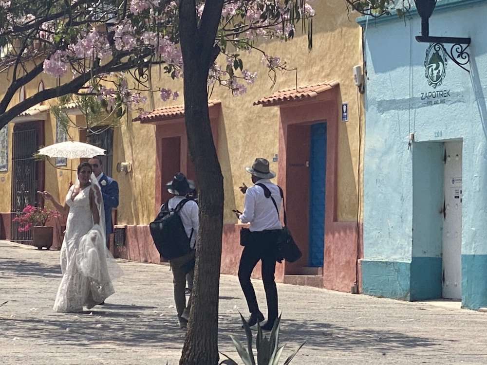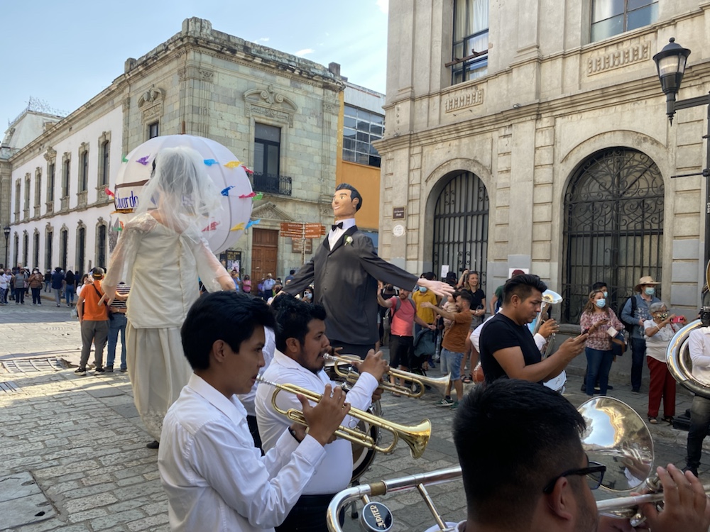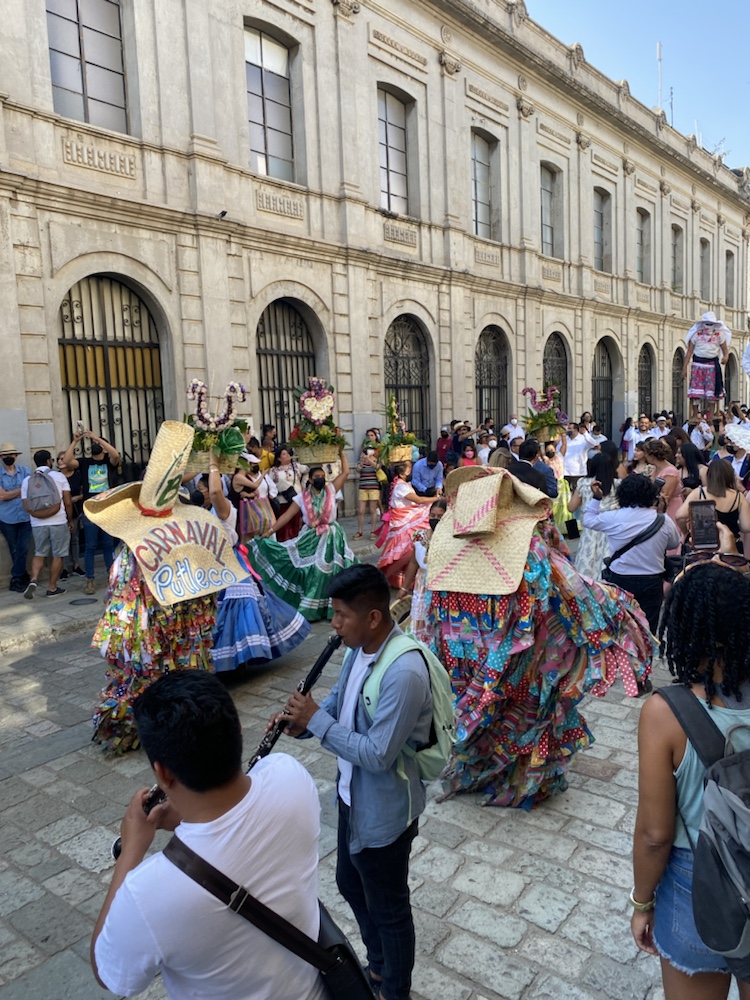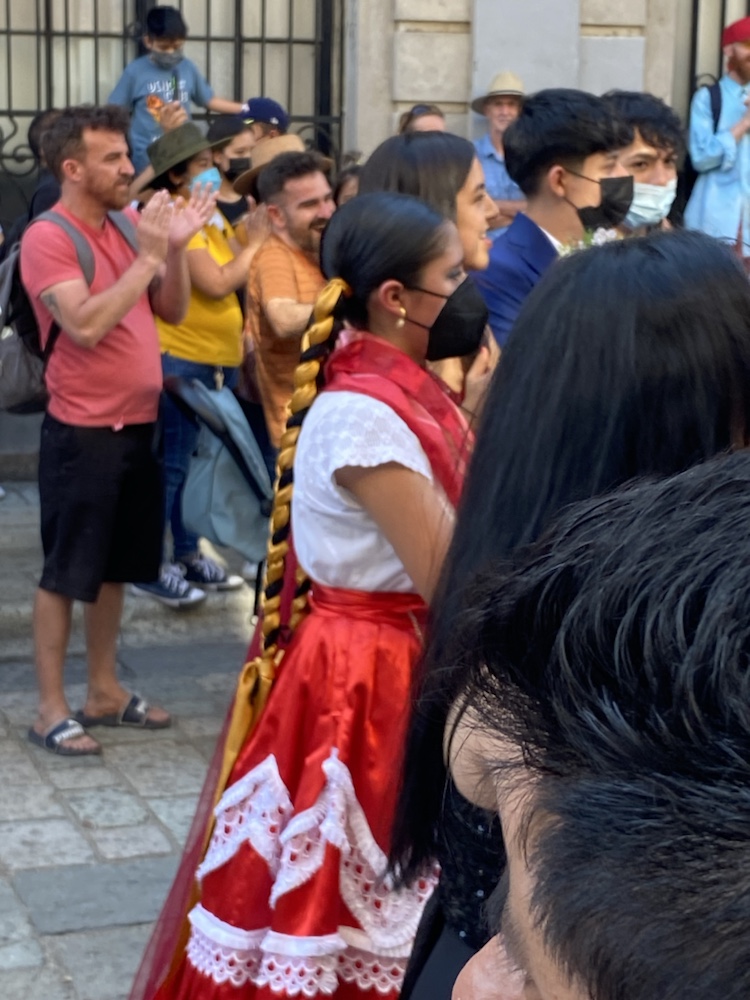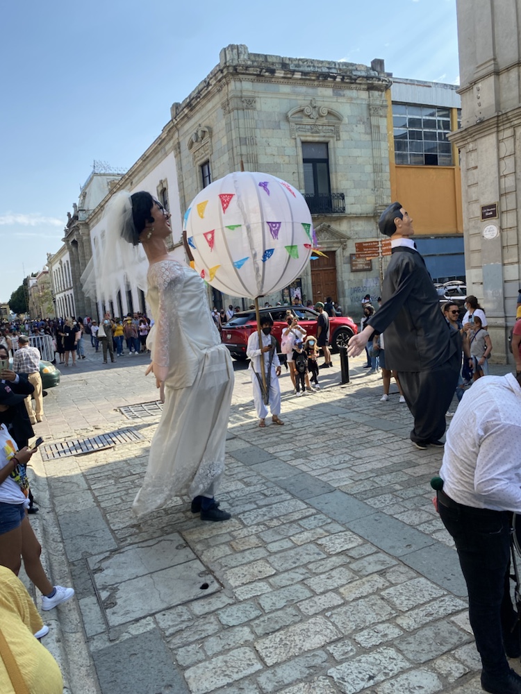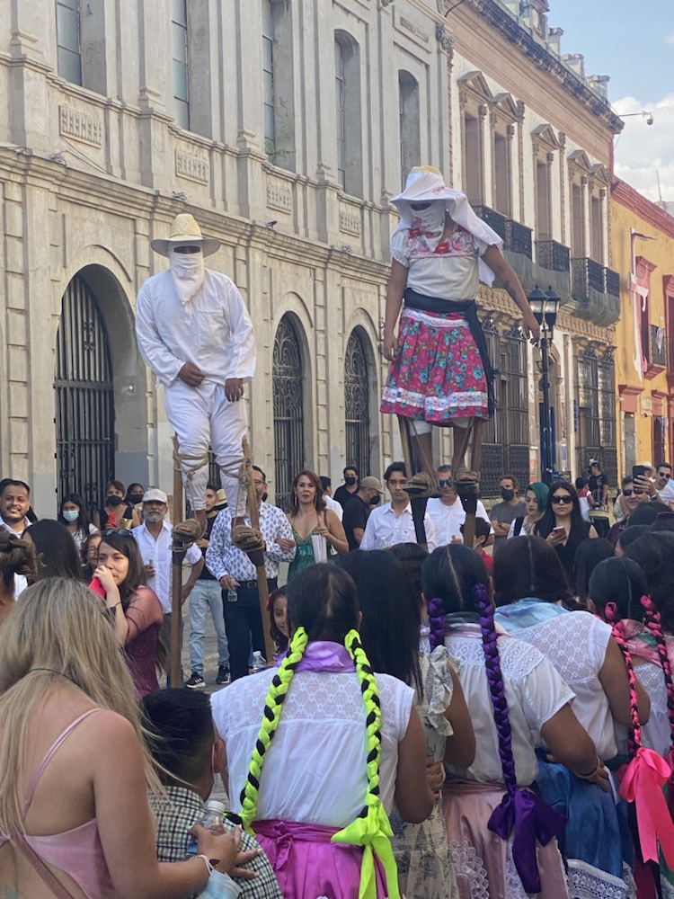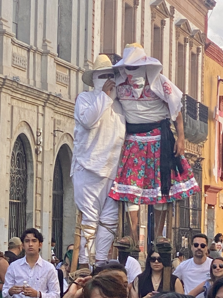 On visite la ville avec Anne et amandine le samedi, jour de mariage. La fête est partout dans les rues. Personnages traditionnels, chants, échassiers, musique de bandas. On passe un très bon moment dans cette ville.