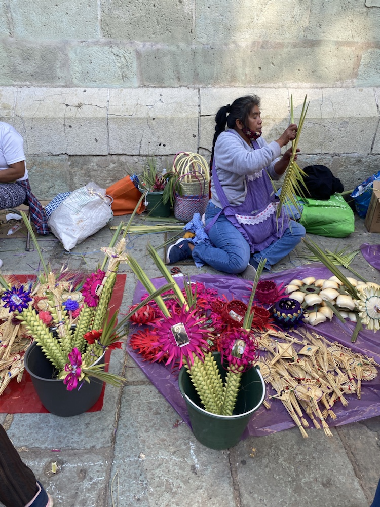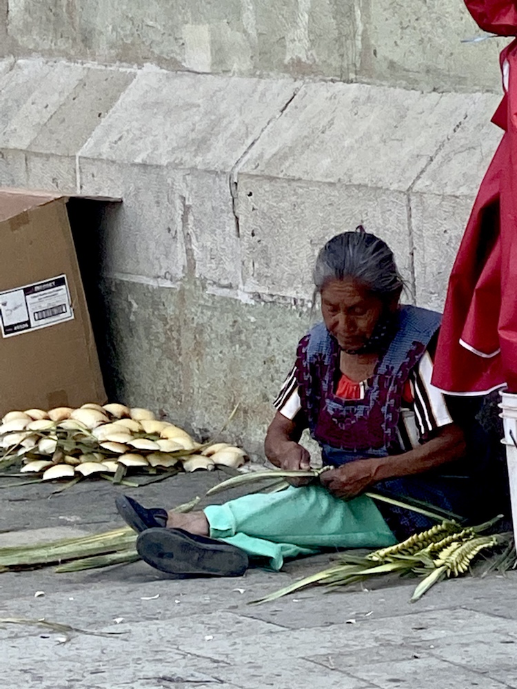 Les préparatifs de la semaine sainte ont commencé. Demain c’est le dimanche des rameaux. Des armées de mexicains s’emploient à nettoyer et à tresser des palmes pour l’occasion.