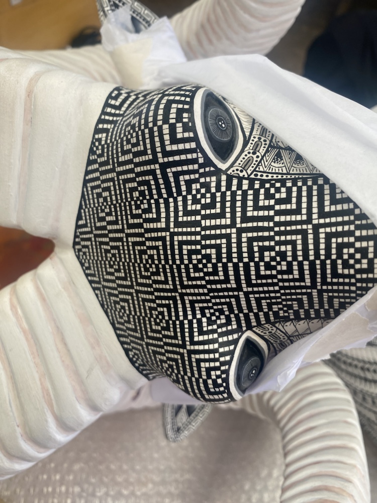 Nous sommes tombés amoureux de ces sculptures peintes de motifs fins, complexes et vifs. Certaines pièces sont de véritables œuvres d’art.