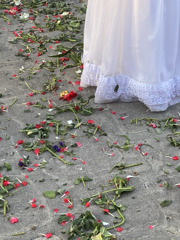 Ensuite passage de La Croix et des prêtres, sur le sol recouvert de fleurs et de menthe odorante.