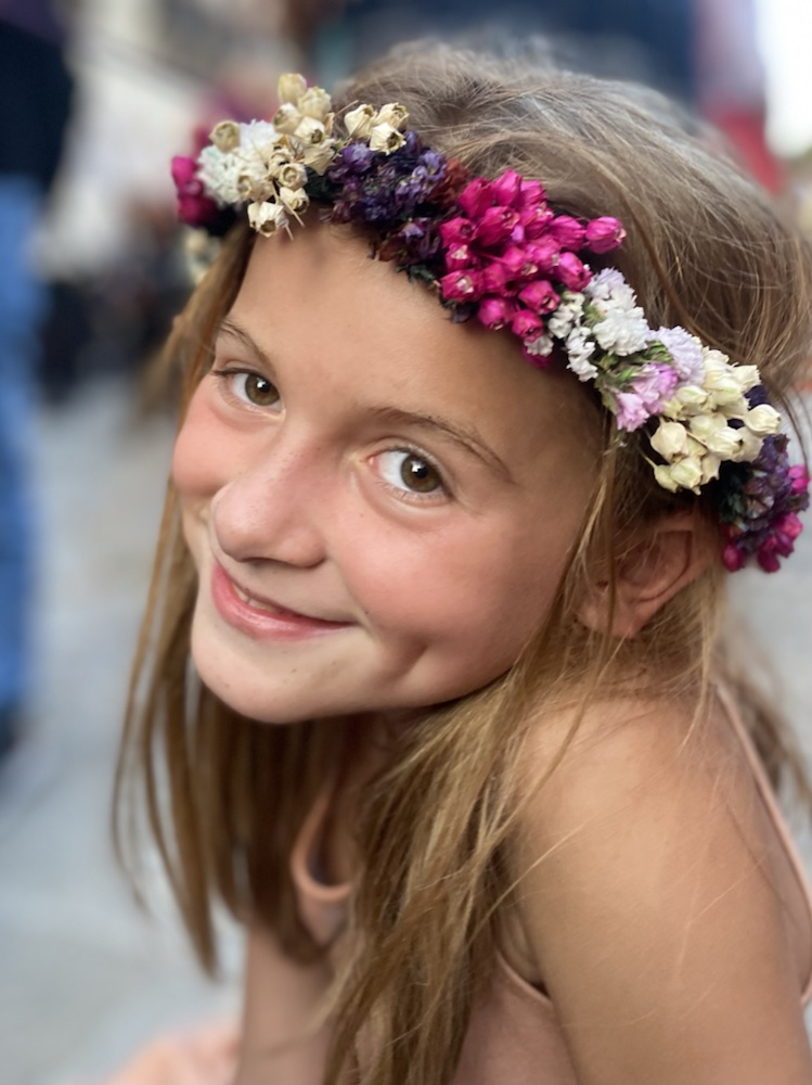 Pour les filles c’est passage par le stand traditionnel des couronnes de fleurs.
