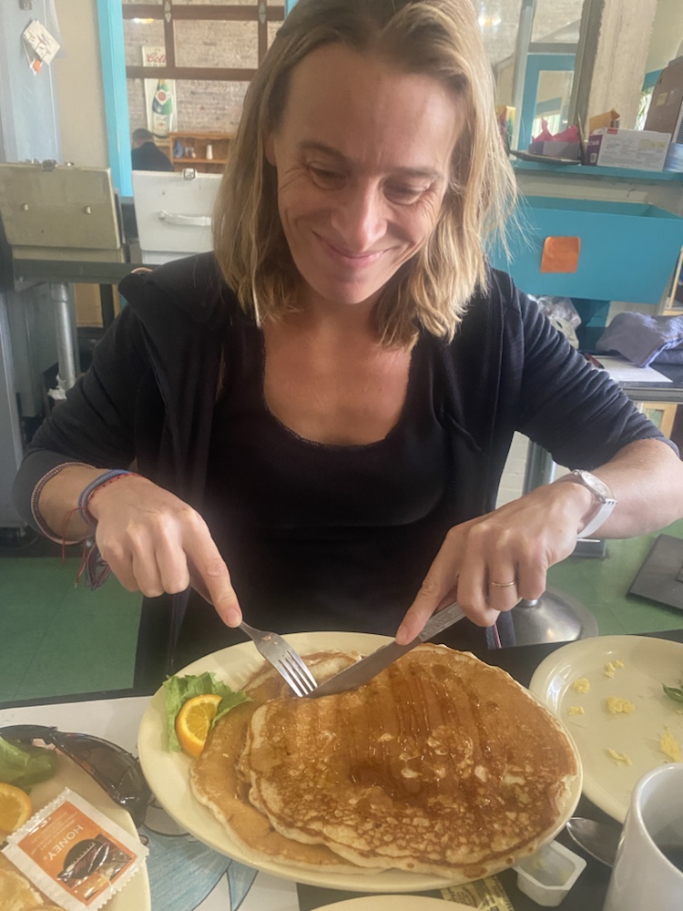 On prend un petit dej gargantuesque entourés de locaux et de touristes. Sirop d’érable, pancakes, œufs brouillés, bacon etc….. l’avantage c’est qu’on pourra tenir jusqu’au soir !!!