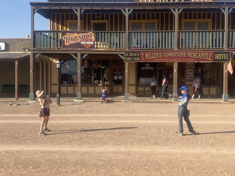 Tombstone est le souvenir de cette époque fantasmée de l’Amérique de la fin du 19 eme. Un quartier entier est resté en l’état. Véritable musée du farwest. Un peu carton pâte et piège à touriste mais on se sent transporté dans nos rêves d’enfant… l’occasion de fabriquer de nouveaux rêves pour nos propres enfants…