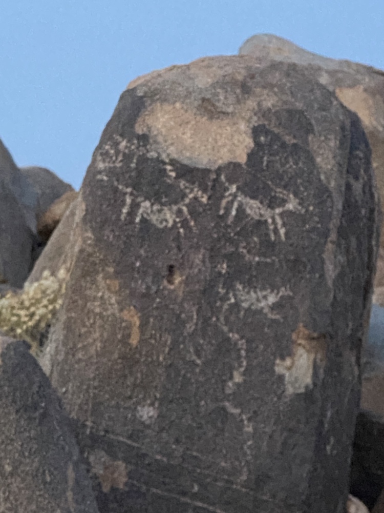 Nous découvrons pour la première fois les petroglyphes des « natives » particulièrement bien conservés sur les rochers entre deux cactus.