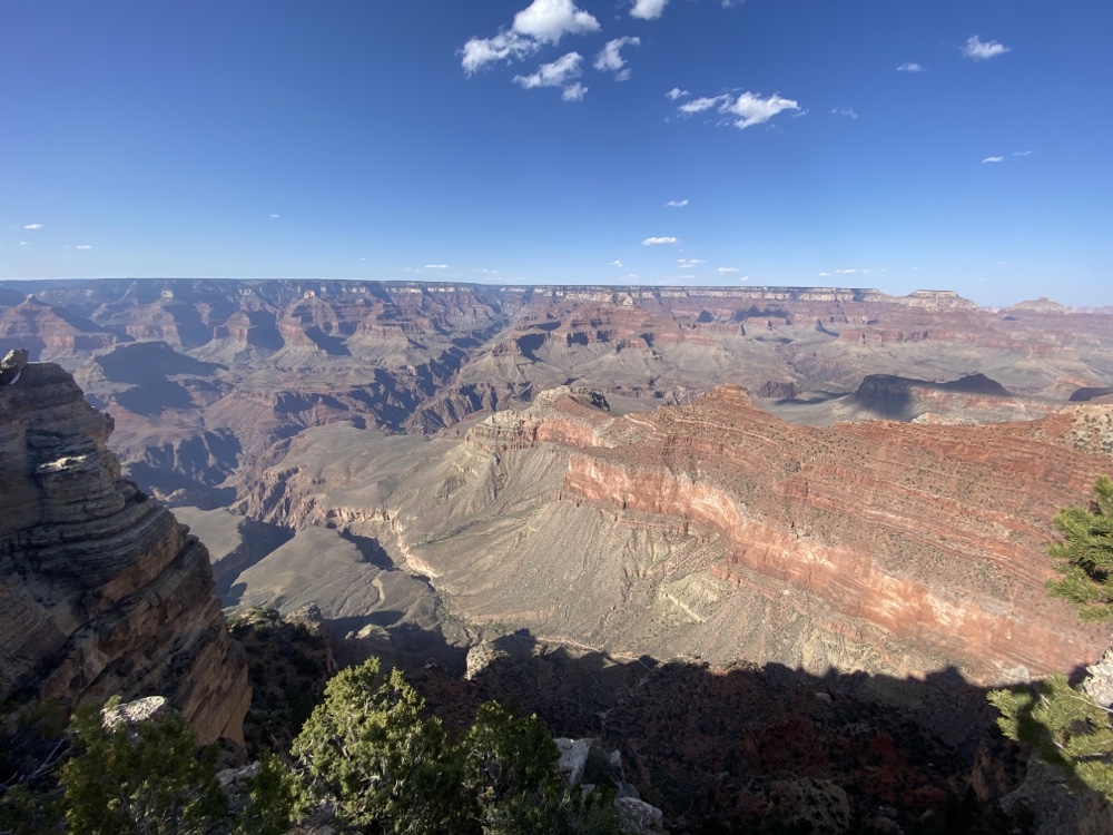 En shuttle, on peut découvrir une dizaine de points de vue différents sur la South rim. C’est cependant à pied, arpentant la falaise sans protection que l’on prend toute la mesure du site et que l’apprécie le mieux.