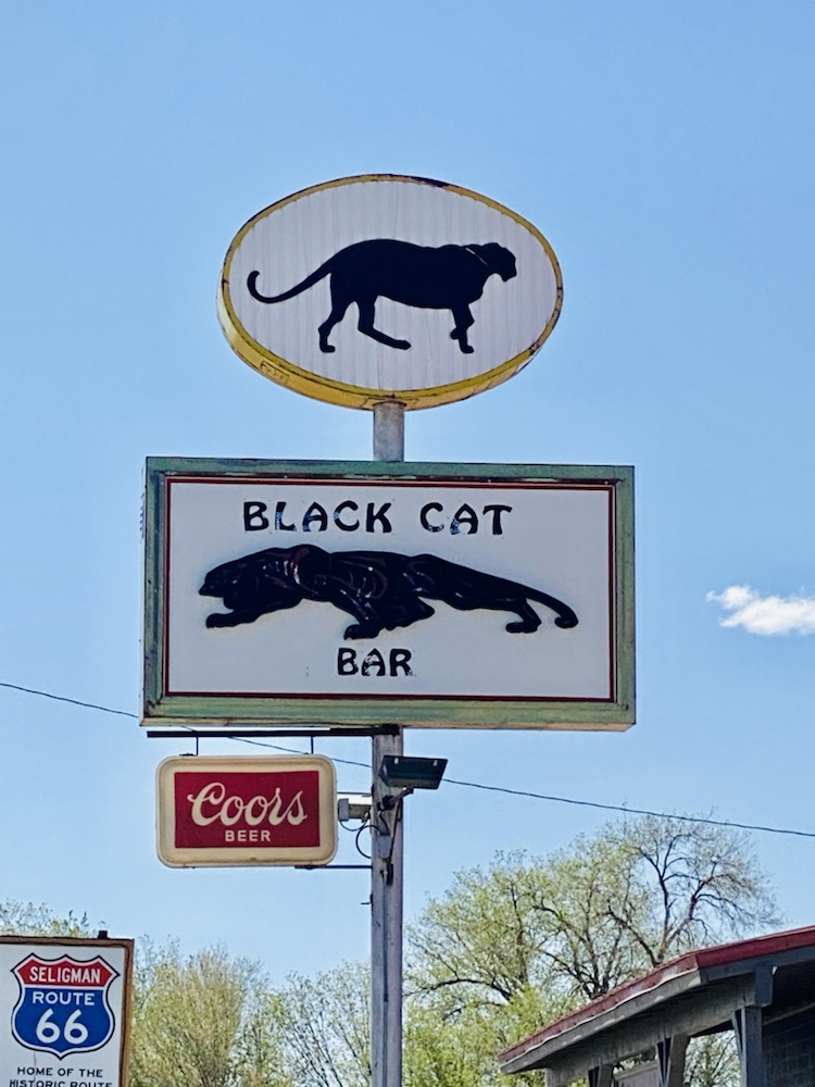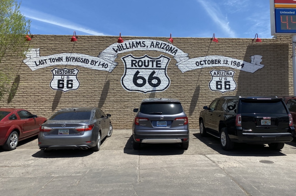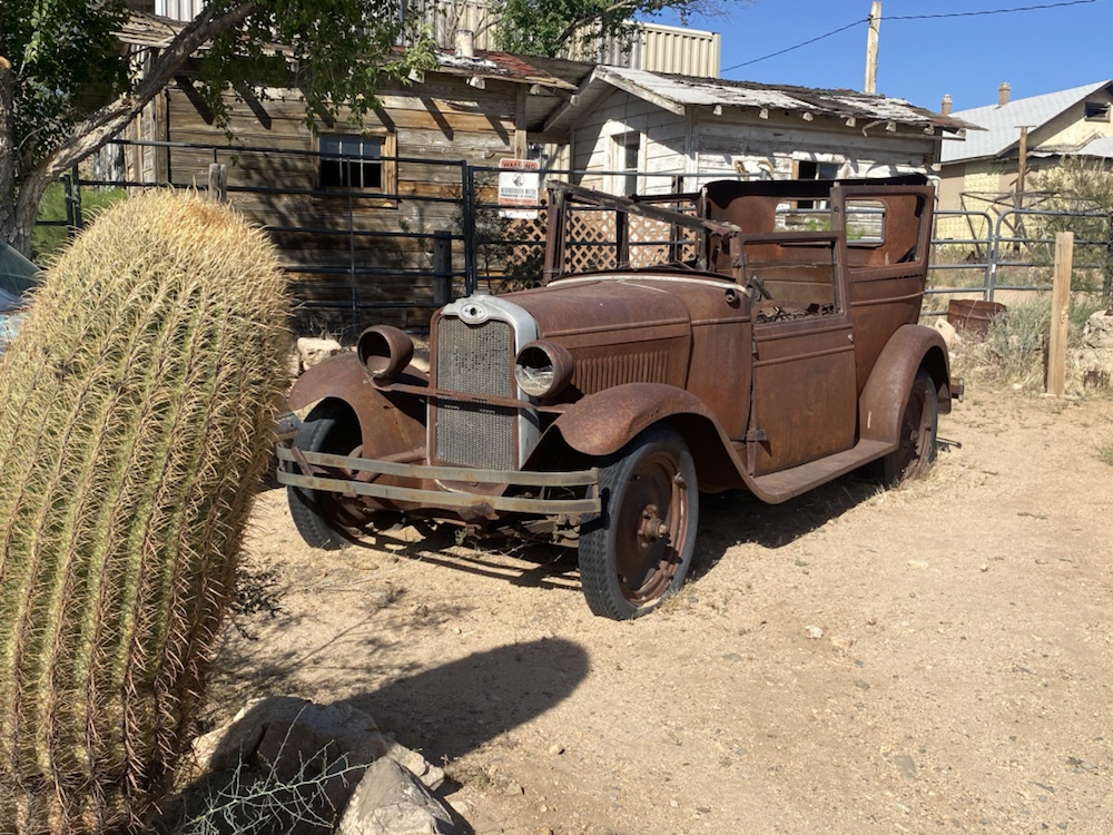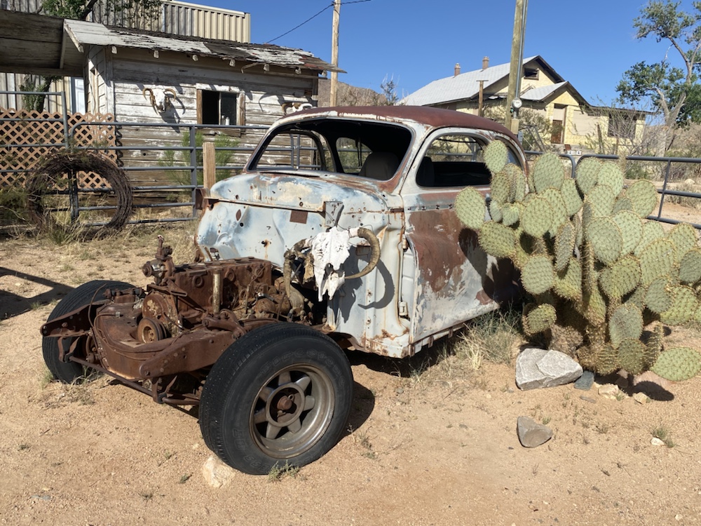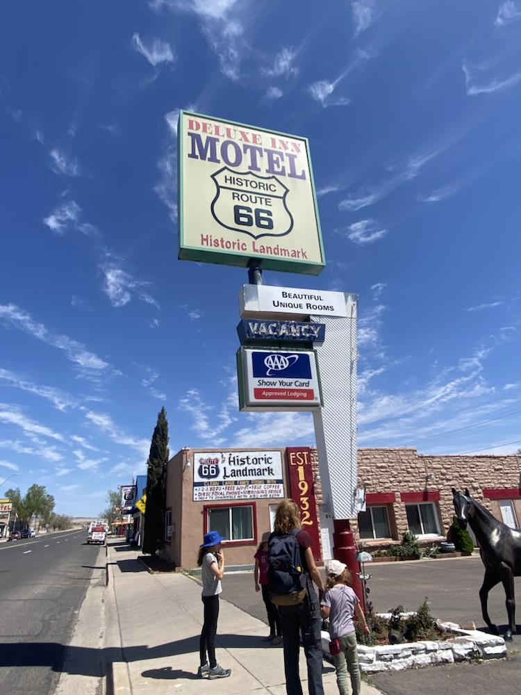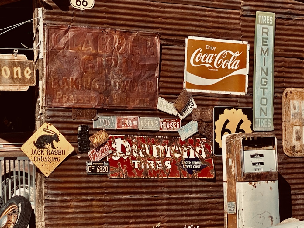 La route 66 sur la portion de l’Arizona que nous avons parcouru, se résume à des portions droites comme un i sur plusieurs dizaines de km, des carcasses de voitures et des lieux hors du temps, véritables musée des temps révolus de cette voie mythique vers l’ouest.