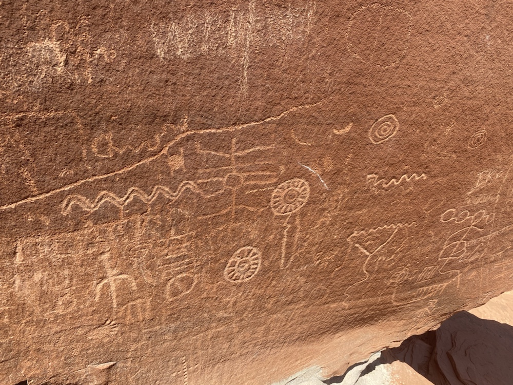 Les parois des rochers sont parfois enluminés de petroglyphes indiens. On aimerait bien savoir ce qu’ils signifiaient !