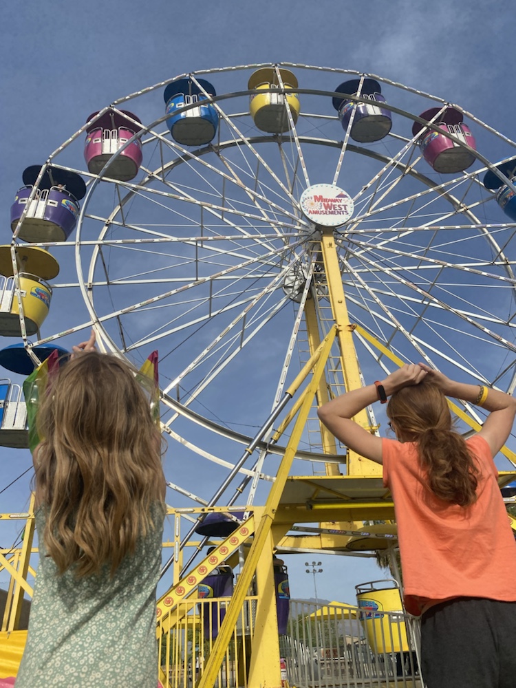 Sur la route , on rencontre une fête foraine à la frontière de l’état. Les filles sont ravies. Maylis a réalisé son rêve de monter sur une grande roue.