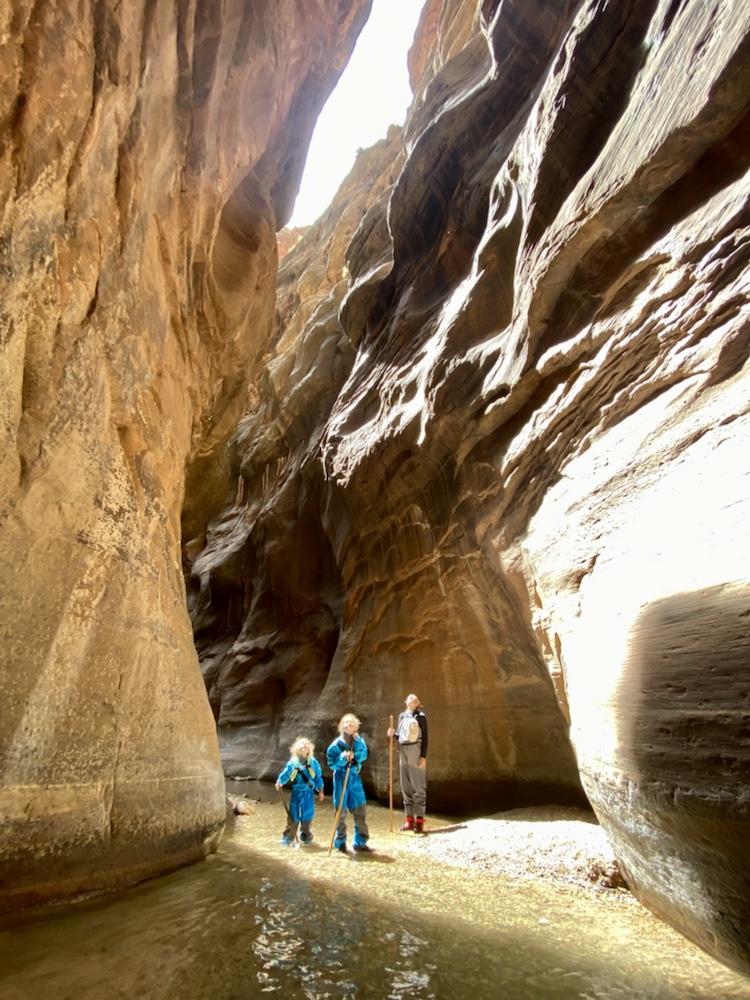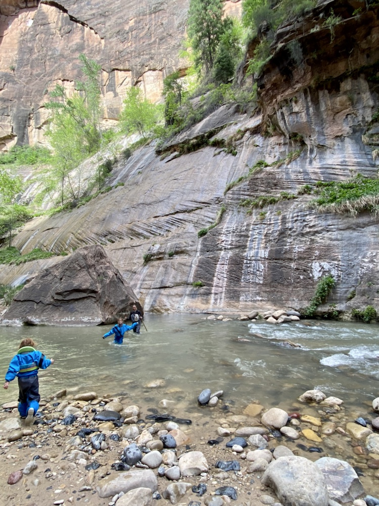 On est mega fiers de nos poulettes. Notre rando a été ponctuée par les « good job! » des randonneurs qui nous croisaient et qui étaient surpris par ces canetons perdus dans la rivière. Honnêtement, en parents complètement honnêtes, on a été bluffés par nos filles et leur résilience ! Franchement on est rentrés vannés alors qu’on avait de l’eau à la taille… Imaginez Maylis….