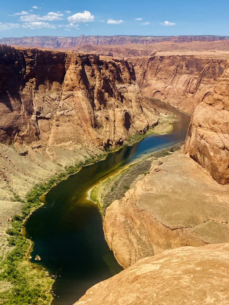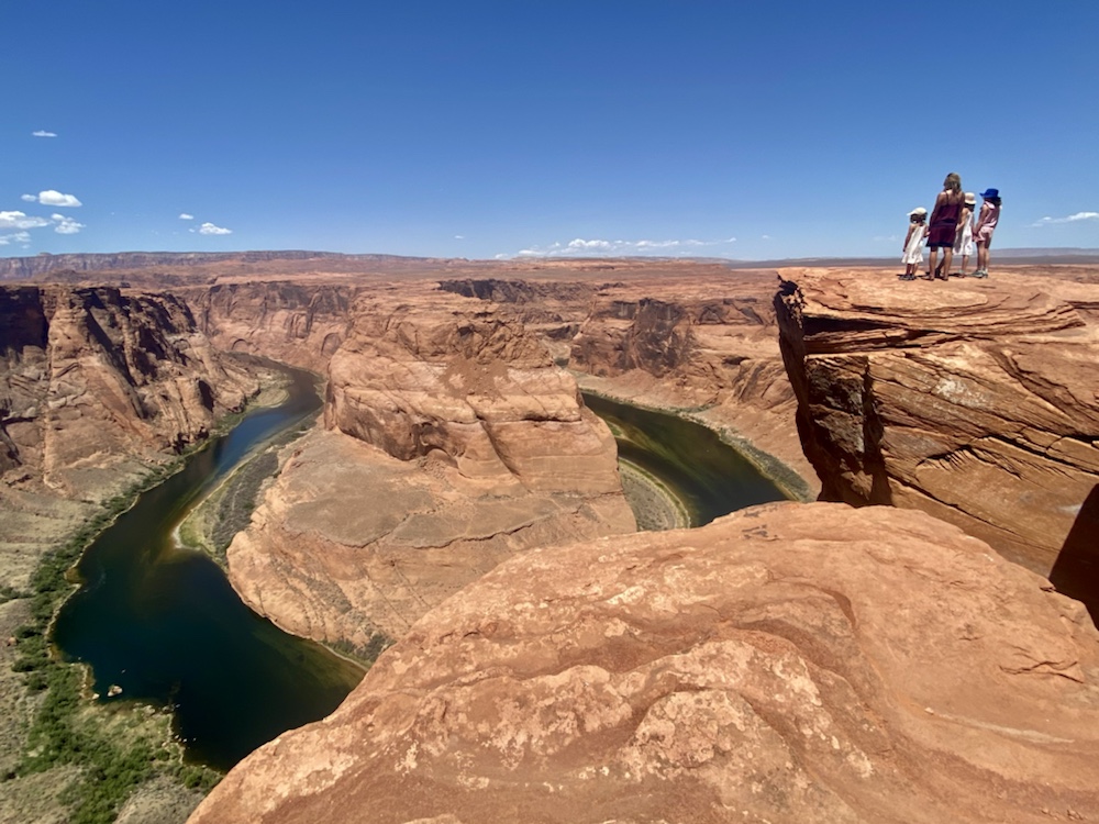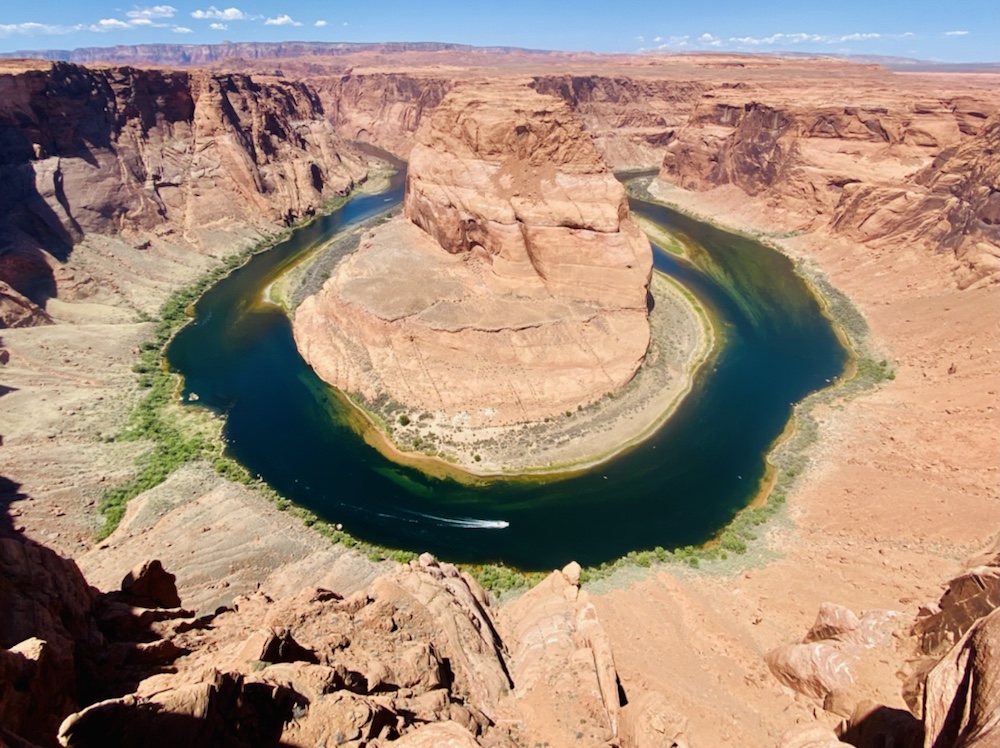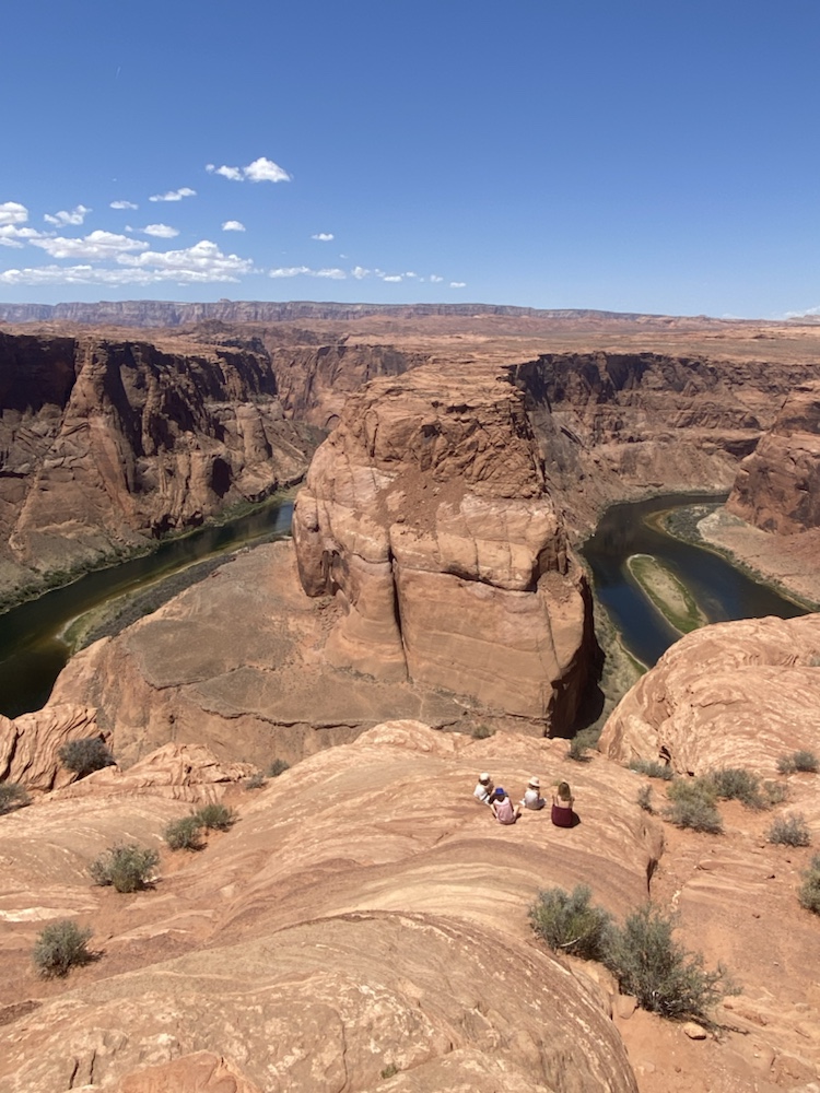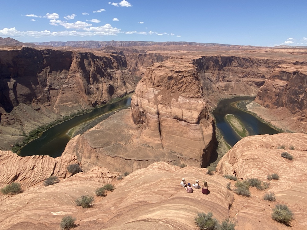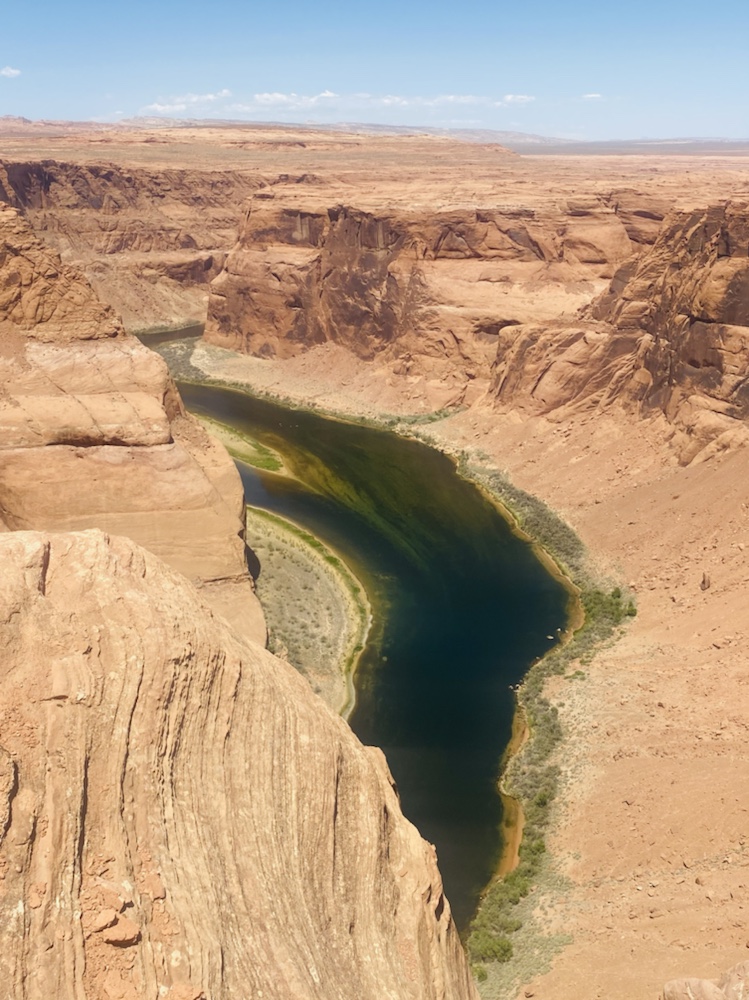 Le matin passage à Horseshoe Bend pour profiter du point de vue sur la boucle du Colorado vert dans les roches du désert. Evitez de vous y promener si vous avez le vertige!!