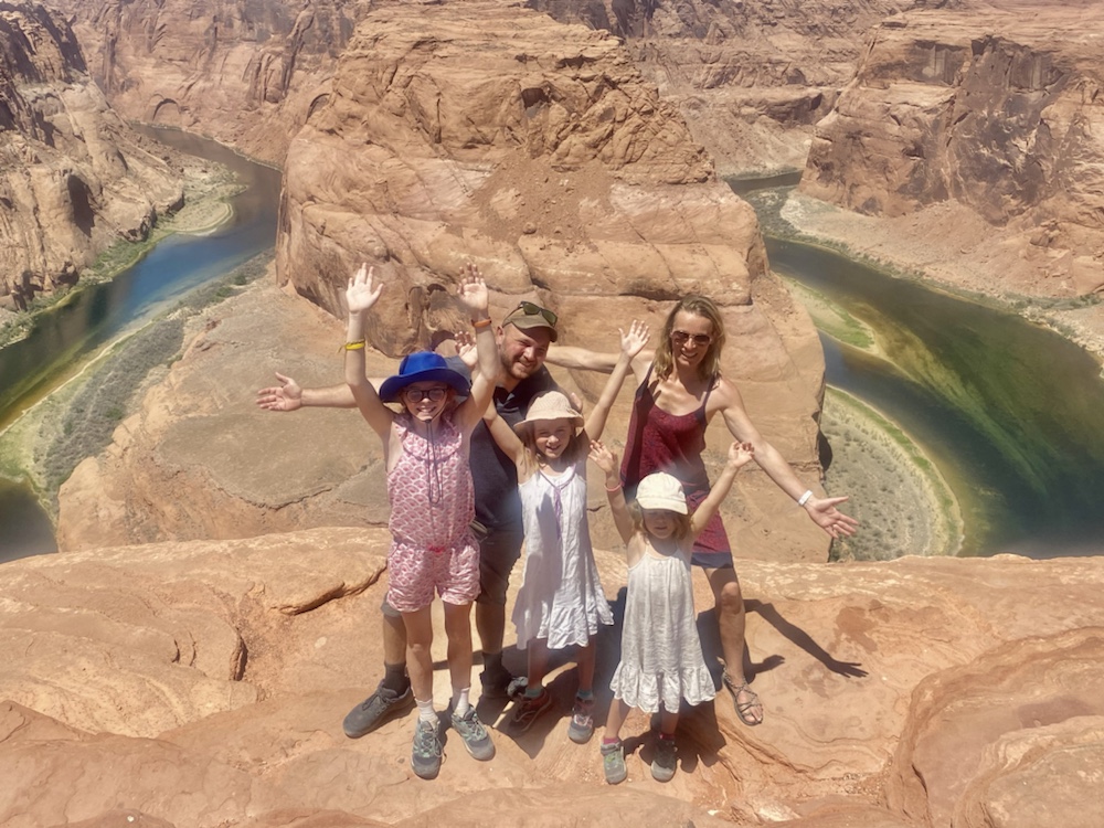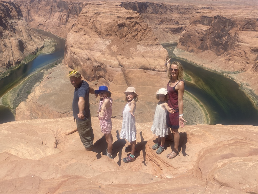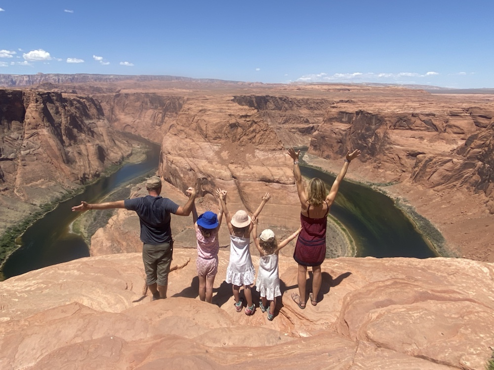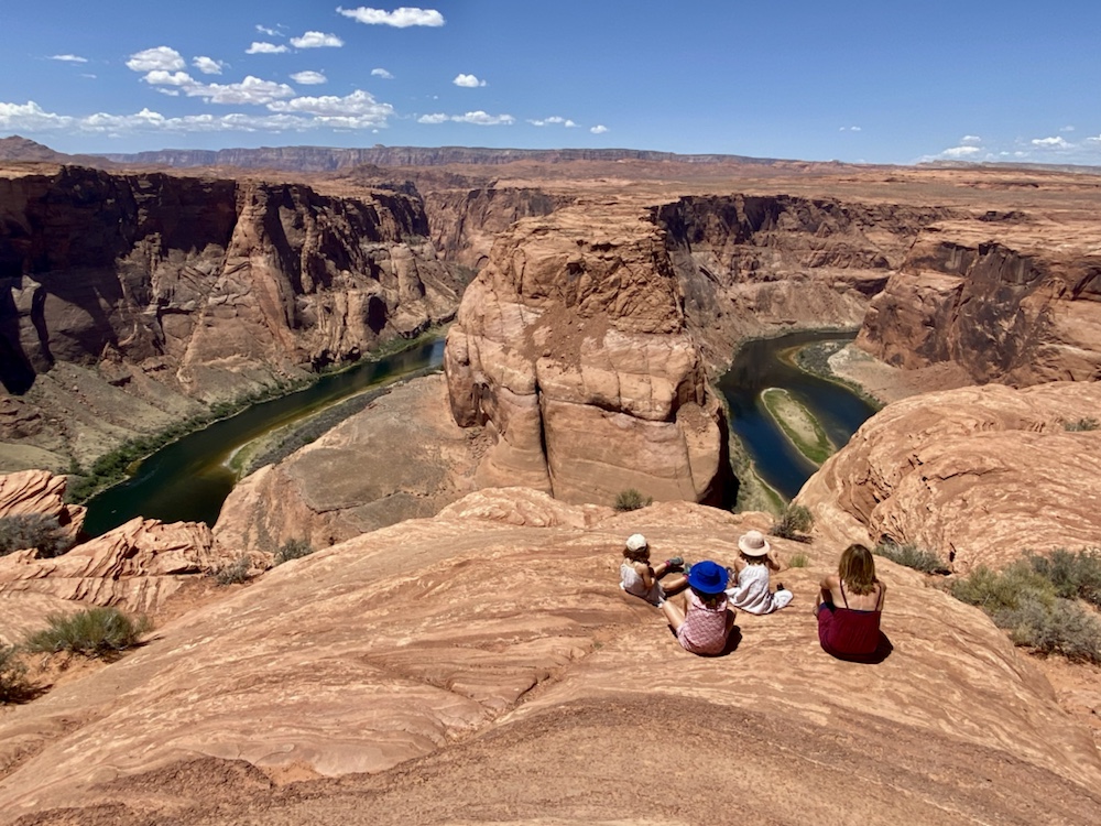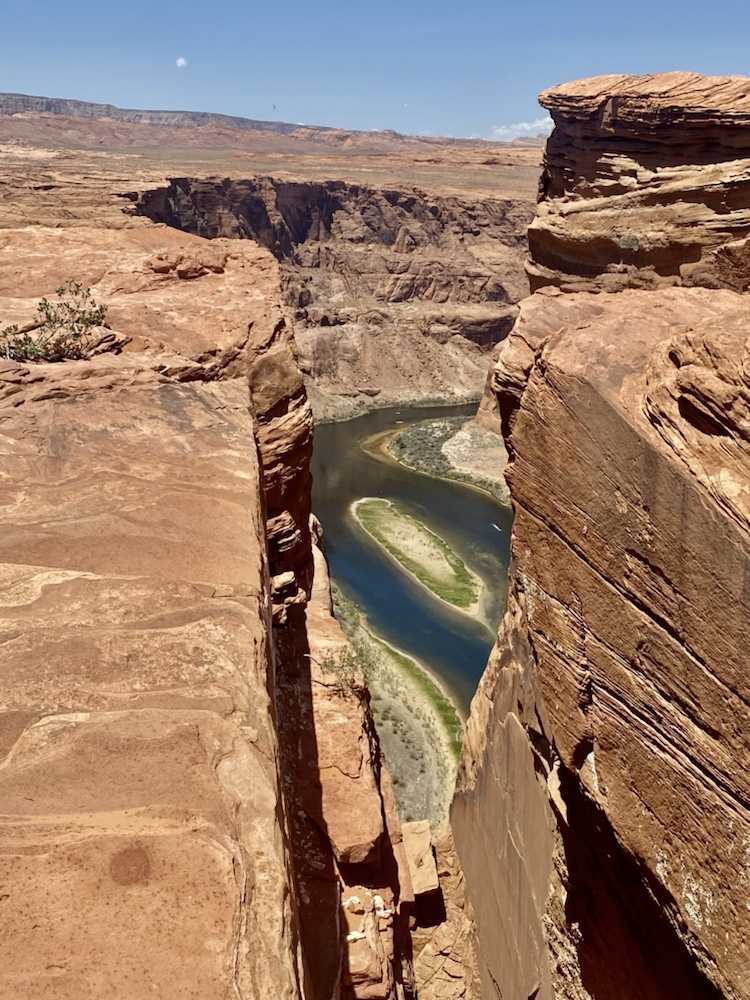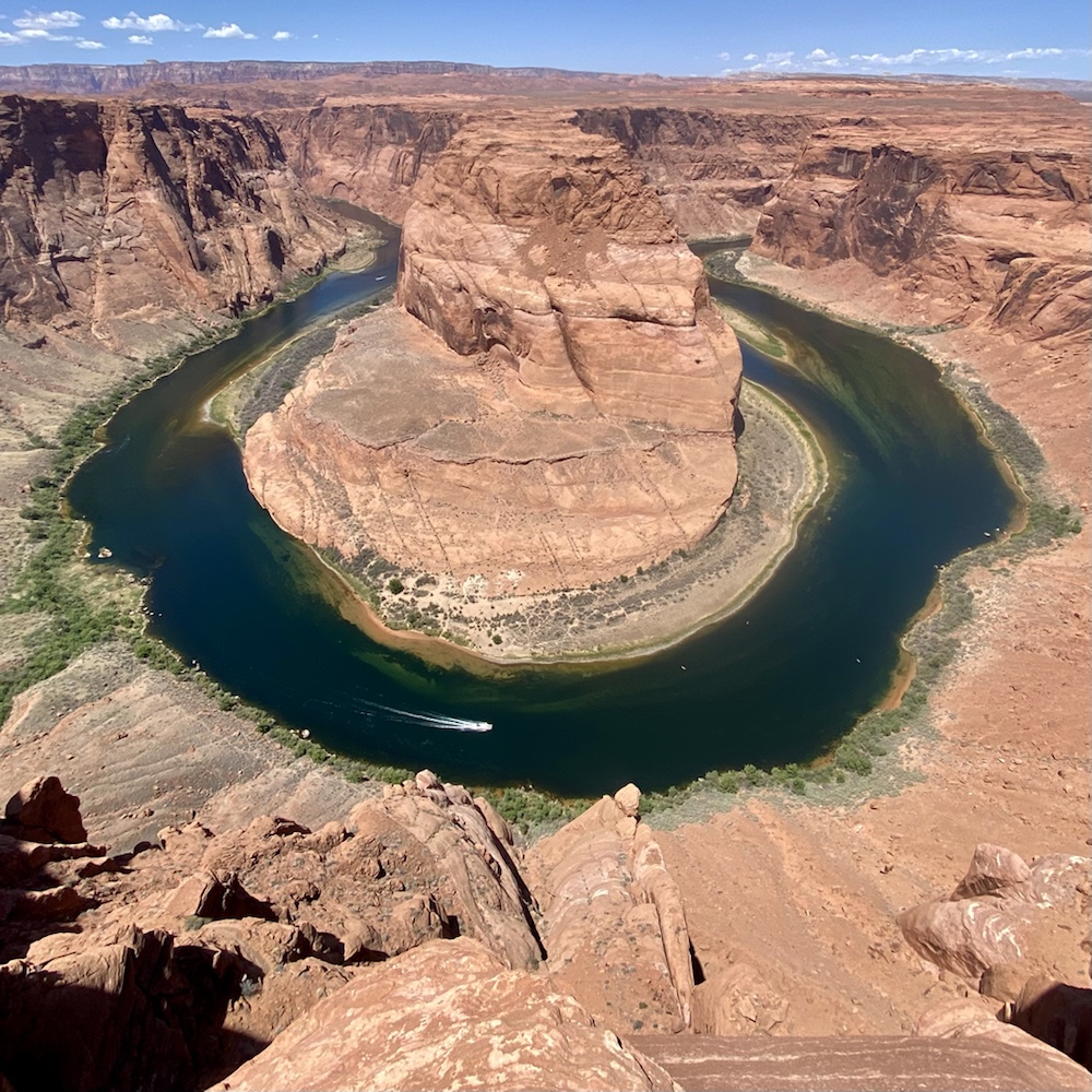 Le matin passage à Horseshoe Bend pour profiter du point de vue sur la boucle du Colorado vert dans les roches du désert. Evitez de vous y promener si vous avez le vertige!!