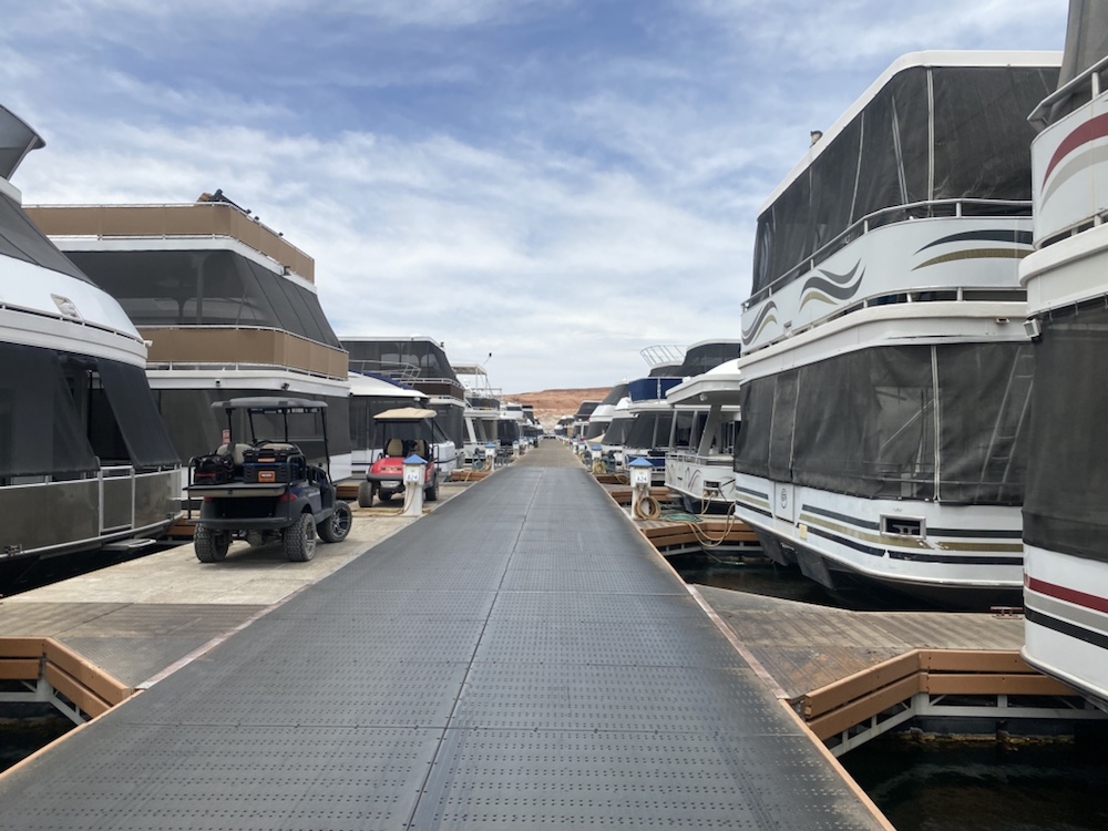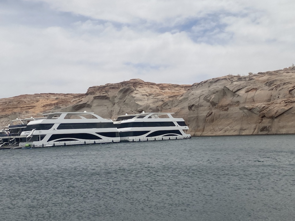 La marina accueille des maisons flottantes luxueuses traînant des jets ski. Dans quelques années ils ne pourront même plus sortir du canyon.