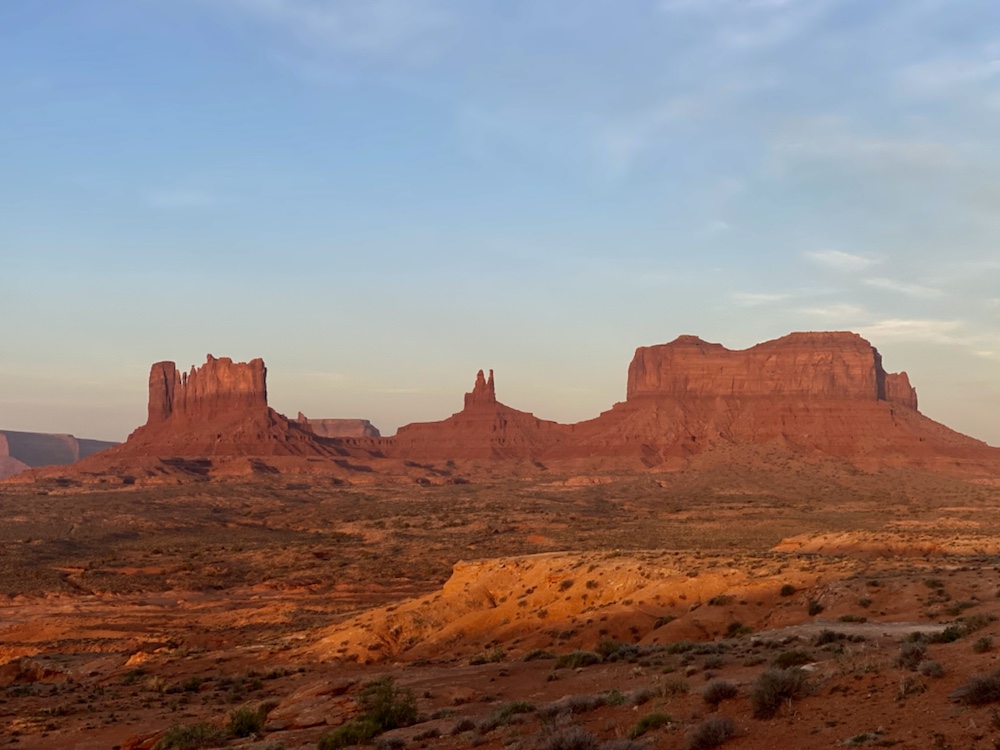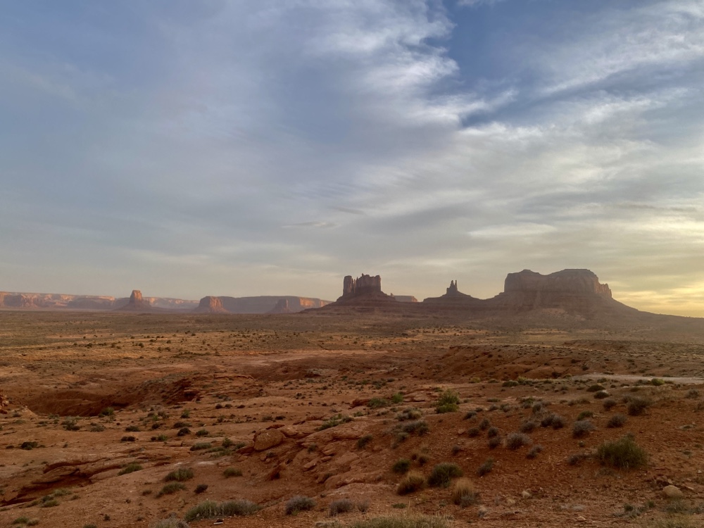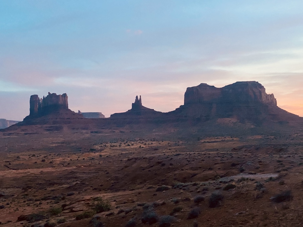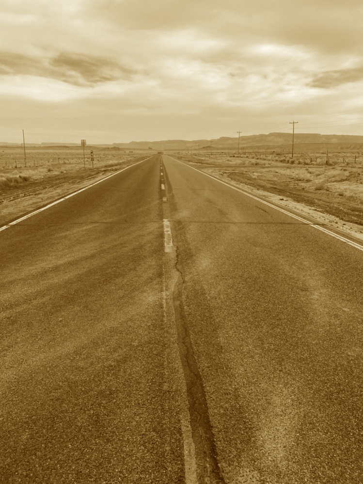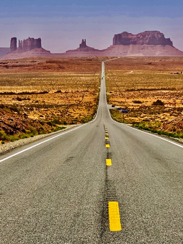 Monument valley se découvre au bout d’une route droite comme un i au milieu du désert.
