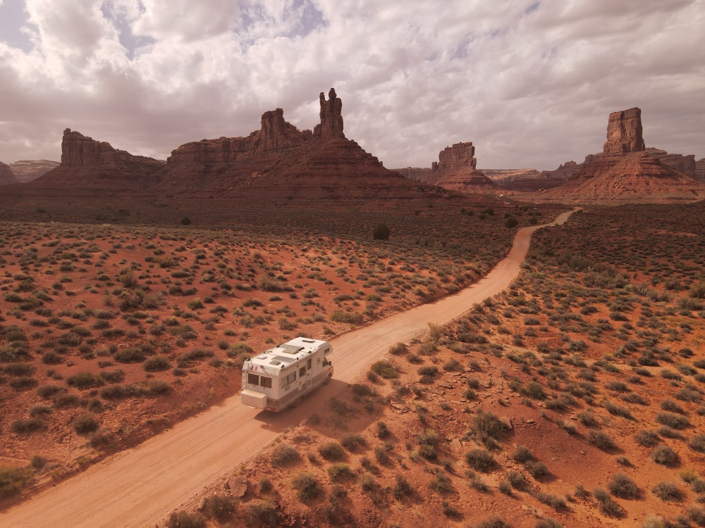 … Et valley of the gods où la poussière enveloppe roro qui se prend pour un troupeau de mustang.