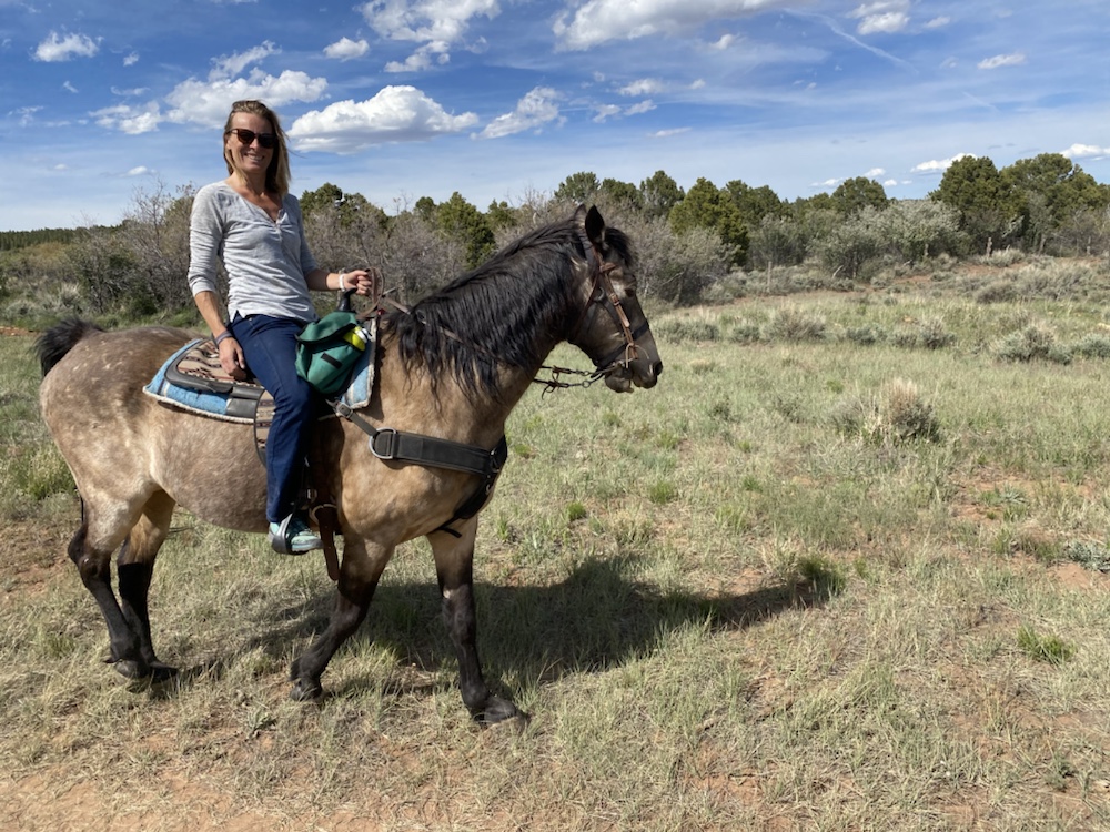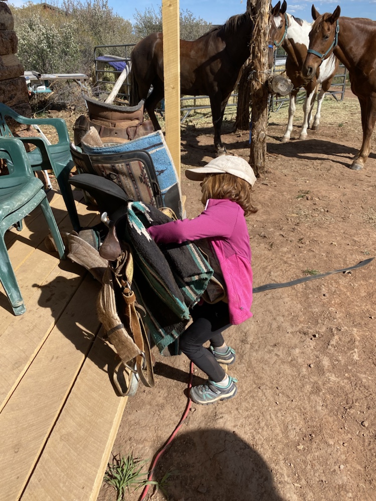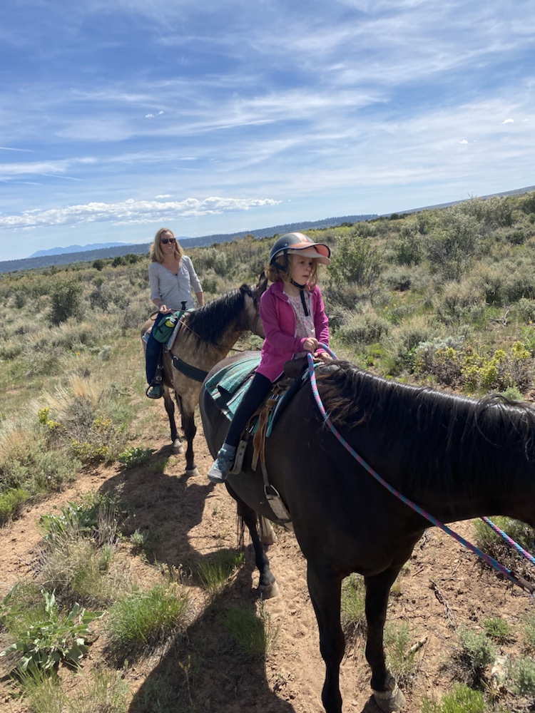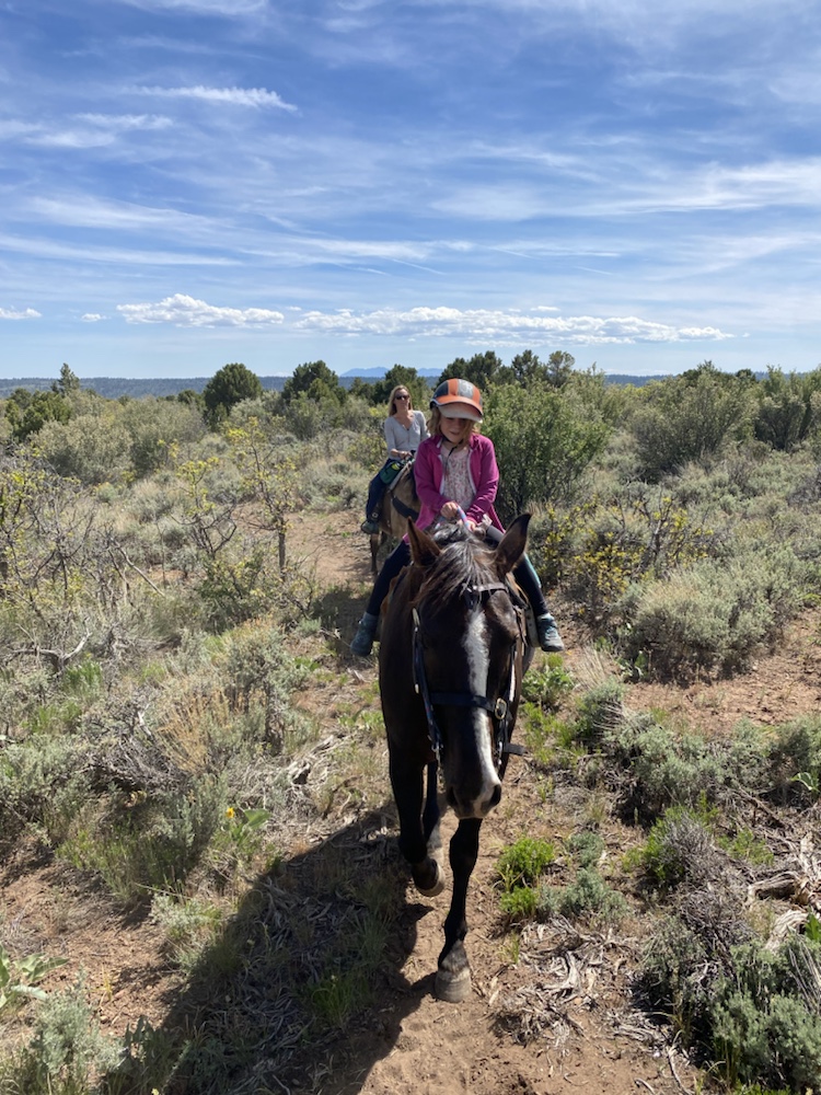 À une heure de Moab, une surprise attendait les filles… pour changer des balades sur les cailloux érodés, on les amène faire une heure de balade à cheval dans les genévriers et les épineux de l’ouest. Merci Palou et mabé!!!