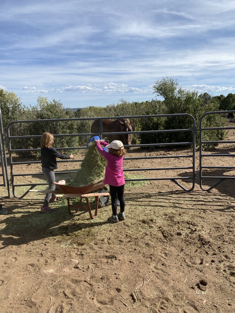 Les filles pansent les chevaux et les nourrissent après la balade à la grande surprise de joe et marjorie peu habitués à tant d’aide