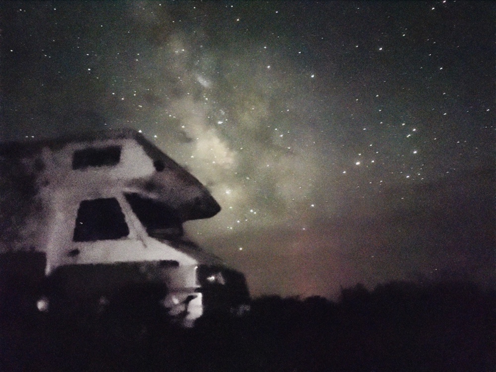 À la faveur d’une insomnie, je profite de l’absence de pollution lumineuse pour faire quelques clichés. Le réveil va être rude….