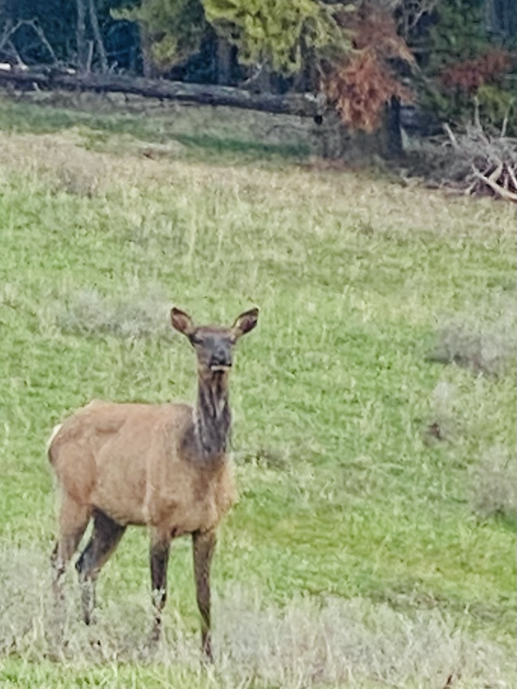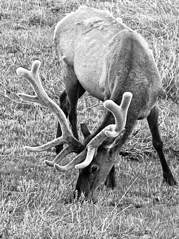 Des wapiti (elks) et Des cerfs. Dont l’un qui squatte au bord de route pour se la raconter avec ses bois magnifiques.
