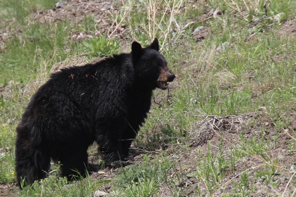 Des ourses noires accompagnées de leurs petits. À quelques mètres de la route en train de brouter des pissenlits… la fin d’un mythe…