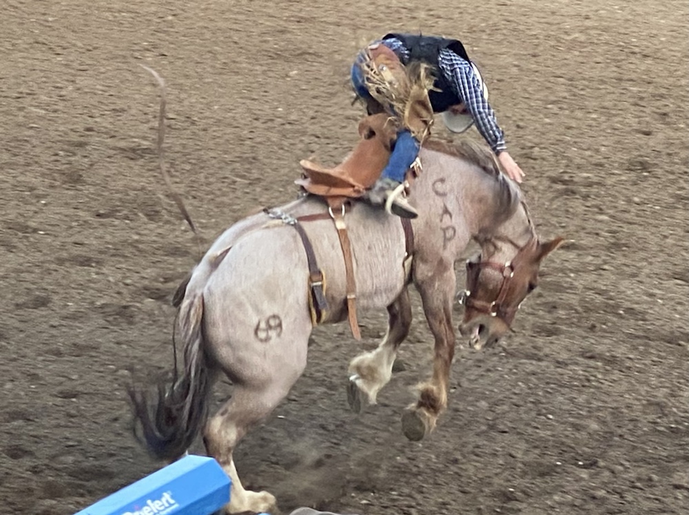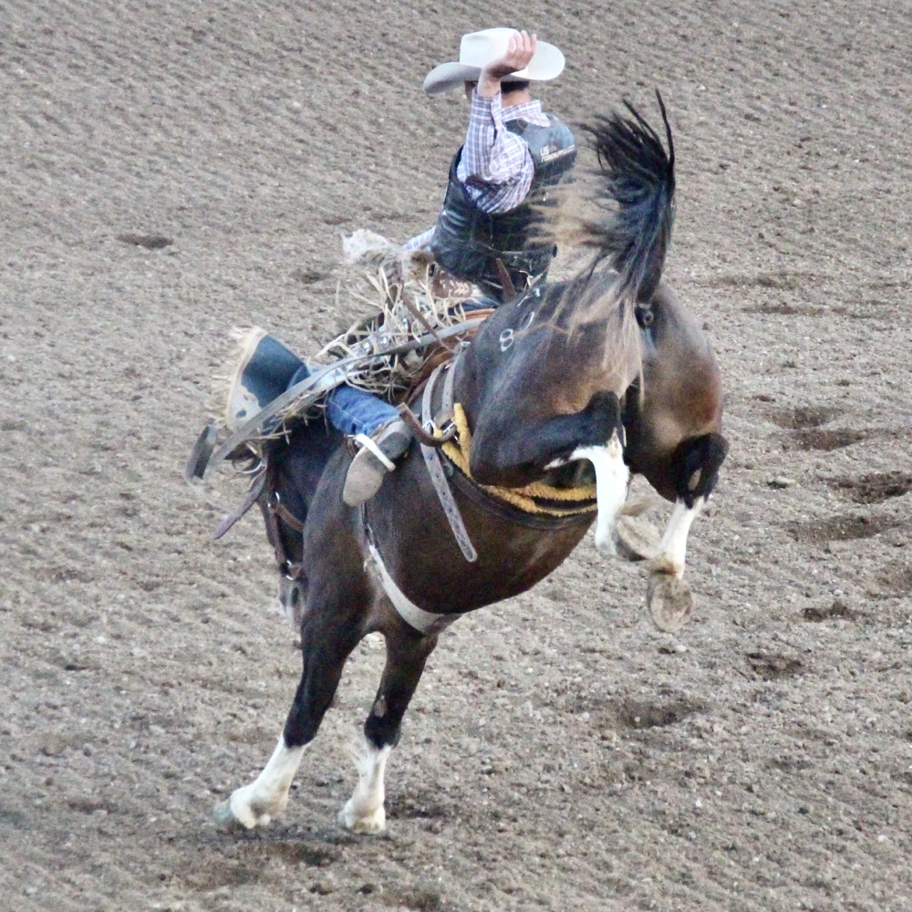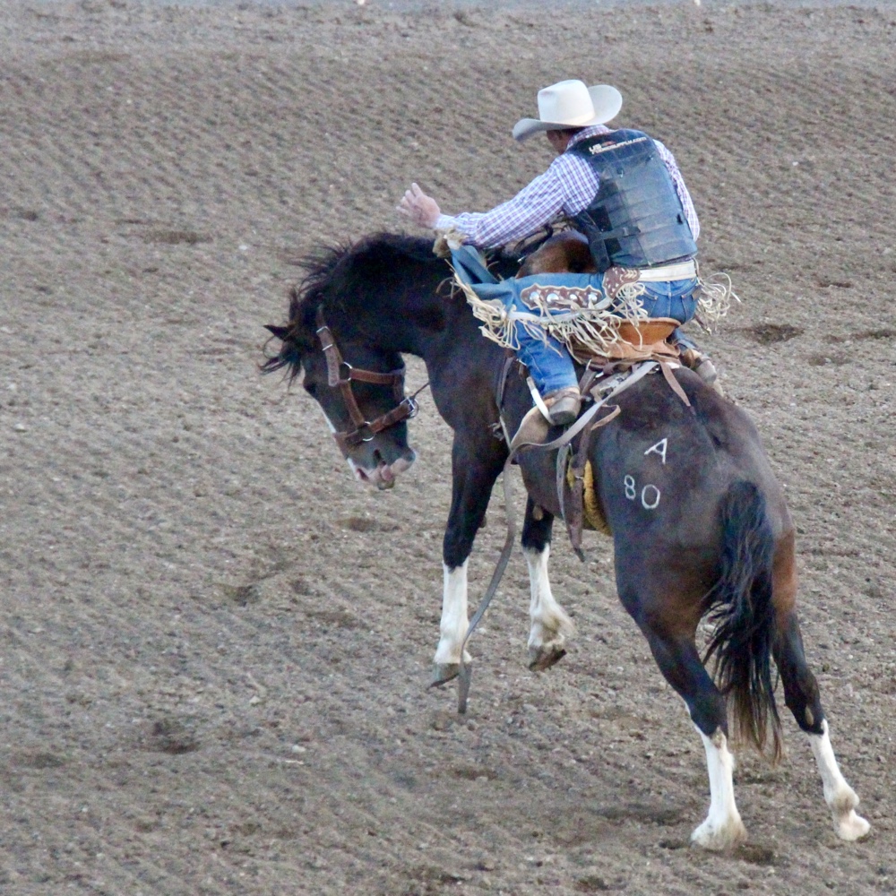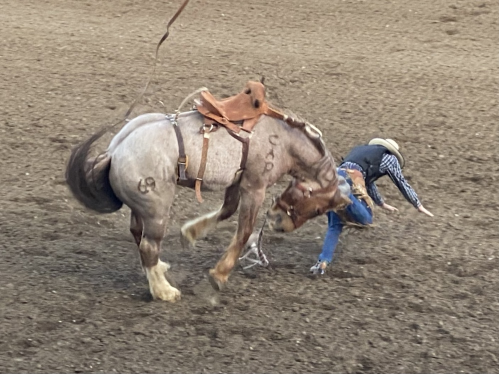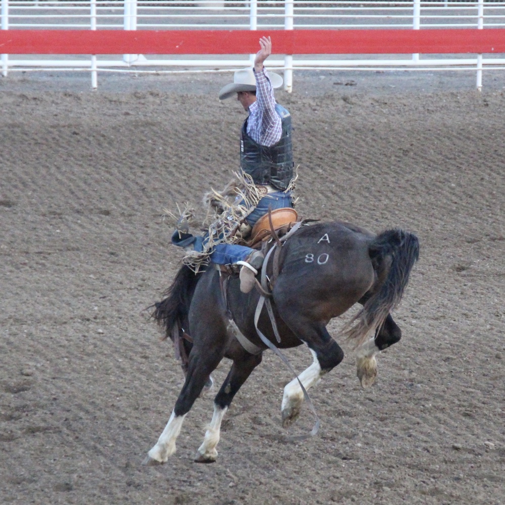 Et enfin, en dernière épreuve, le rodéo sur taureau fou. Plusieurs catégories mais globalement le cow-boy finit par terre. Sauf un…. Le taureau devait avoir la sangle moins serrée. Oui parce qu’ils y mettent encore une sangle …. Promis, ils disent que c’est pas sur les roubignoles mais ça semble gêner quand même.