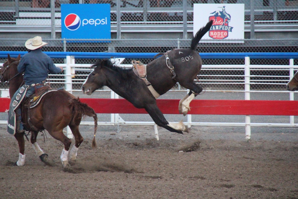 Les taureaux et les mustangs rentrent aussi aux bercails après avoir fait tomber la sangle. Escortes par les chefs cowboys qui passent la soirée à récupérer les taureaux énervés.