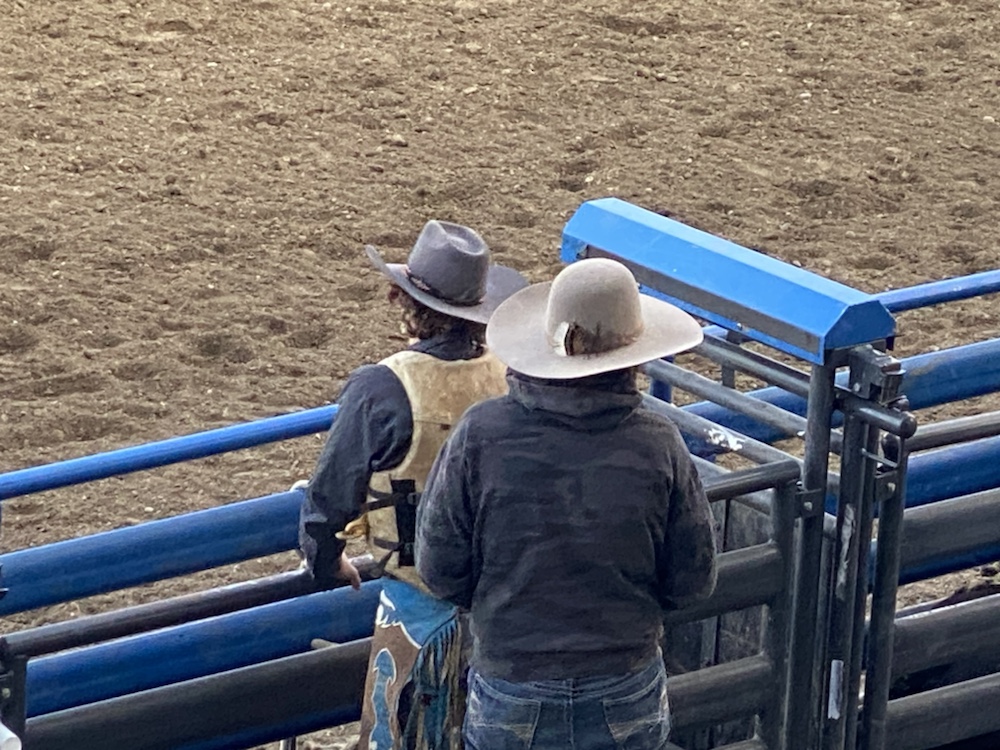 On s’installe du côté des artistes pour voir les cowboys se préparer.