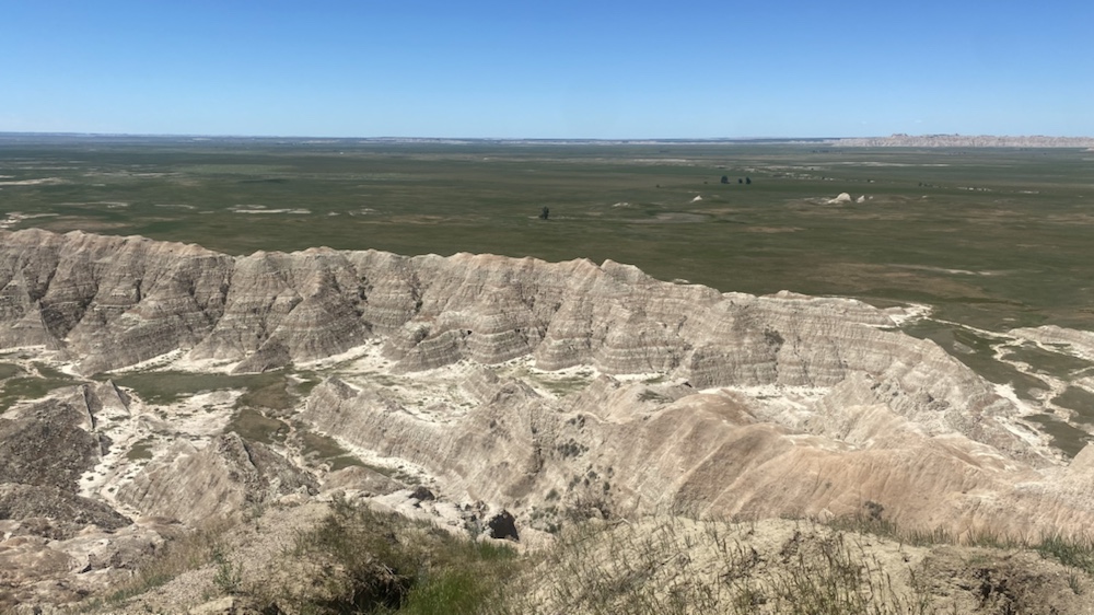 On est dans le dakota du sud. Pour vous donner une idée, c’est une région immense au milieu des usa avec le décor de danse avec les loups. (d’ailleurs le soir même on y a entendu des hurlements de loups) 😱