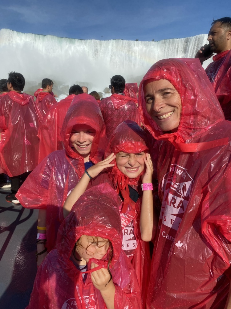 Pour profiter du spectacle sous un autre angle, on a décidé de prendre le bateau pour aller au pied des chutes. Les bateaux américains sont l’équipe bleue. Au Canada. Les rouges !