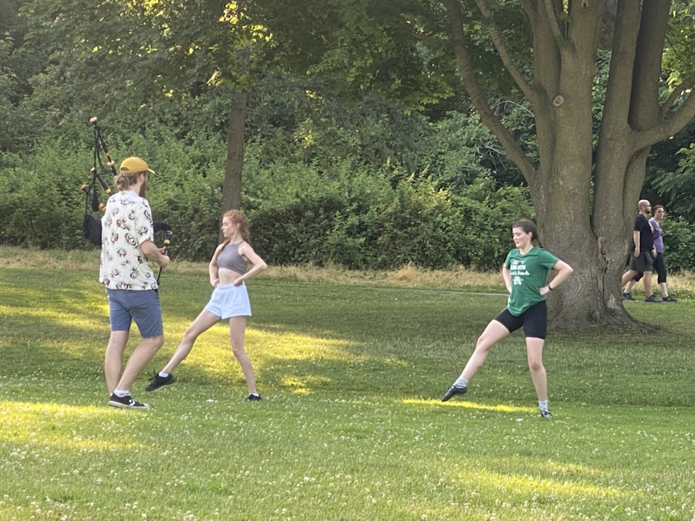 Pour nous remettre de nos émotions on fait une pause sur l’herbe en regardant une école répéter pour la fête nationale canadienne, en mode irlandaise ☘️. Rencontre curieuse dans cette ville aux airs d’euro dysney.